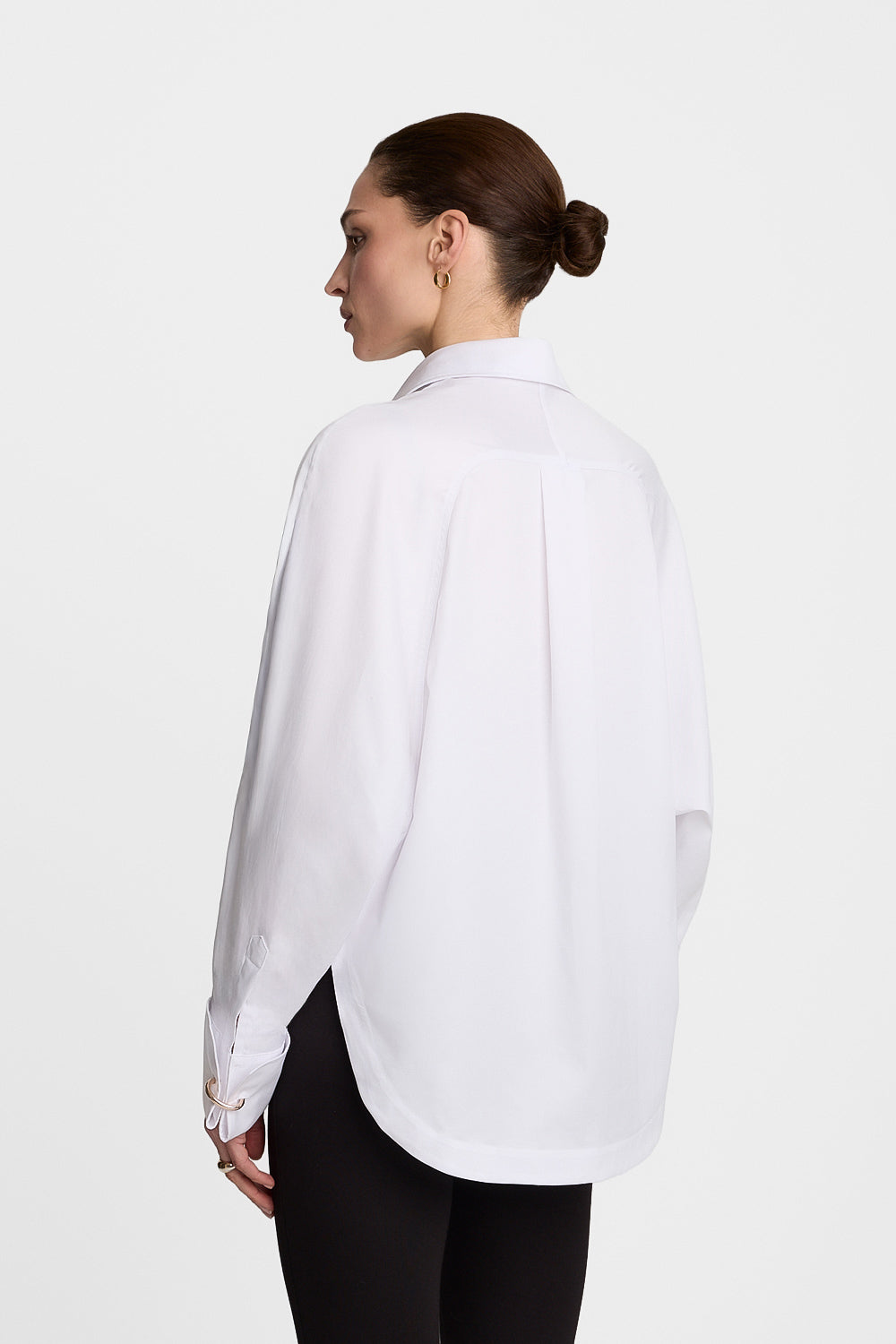 Koszula Miss Mitte White została zaprojektowana i uszyta w Polsce, z dbałością o detale oraz jakość materiałów. To model niezwykle uniwersalny — sprawdzi się zarówno w codziennych stylizacjach z jeansami, jak i w bardziej eleganckich zestawieniach z szerokimi spodniami, spódnicą czy marynarką.