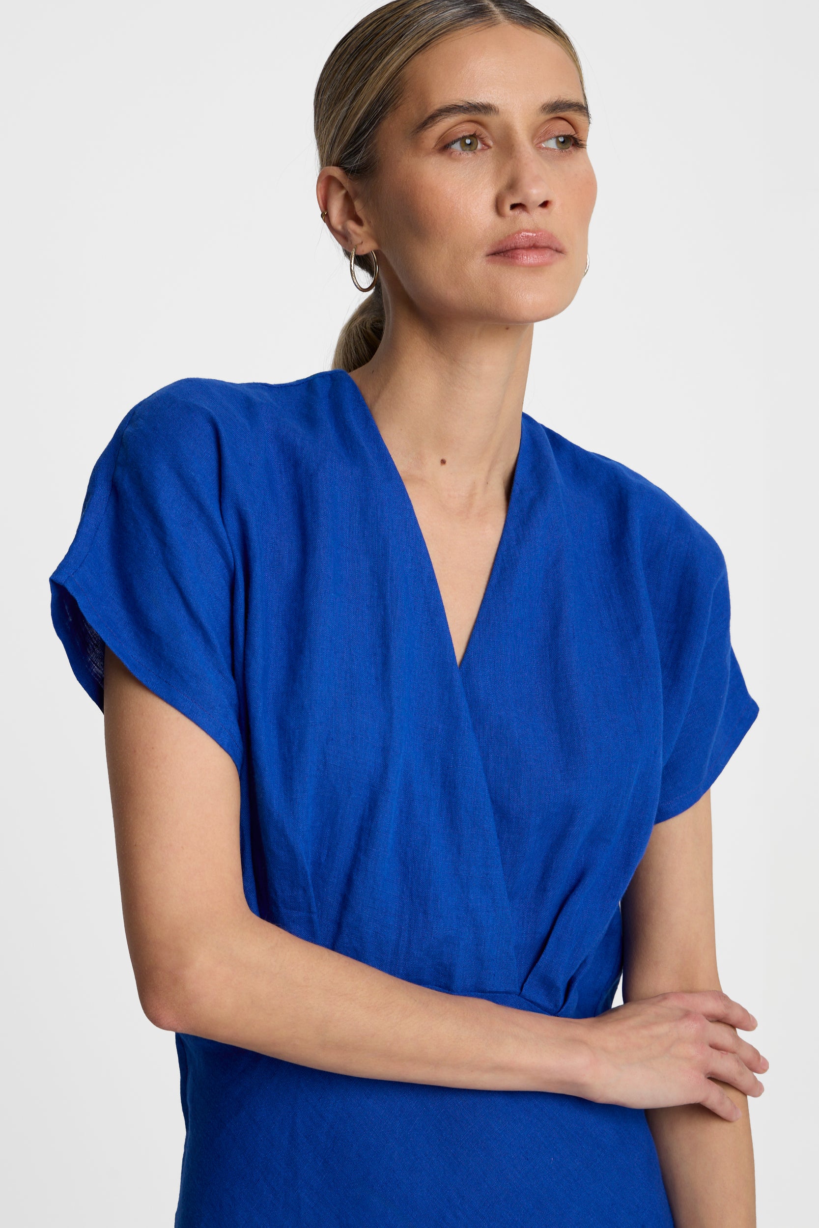 Kobaltowa sukienka lniana midi Miss Airy Cobalt