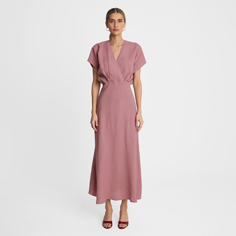Malinowa sukienka lniana midi Miss Airy Raspberry Pink