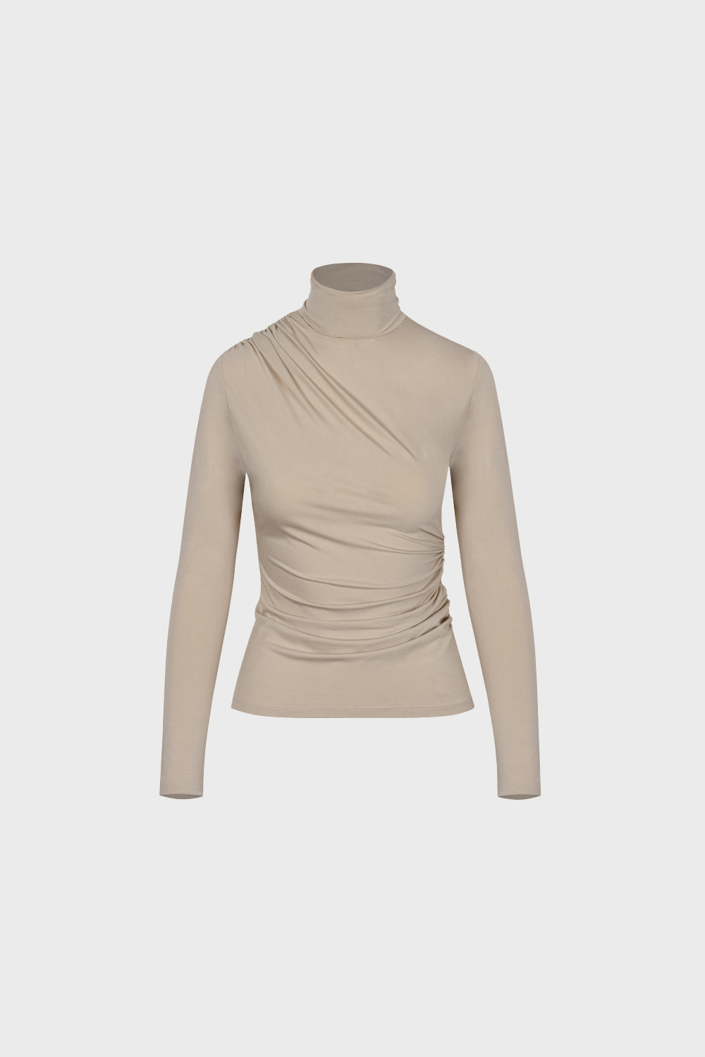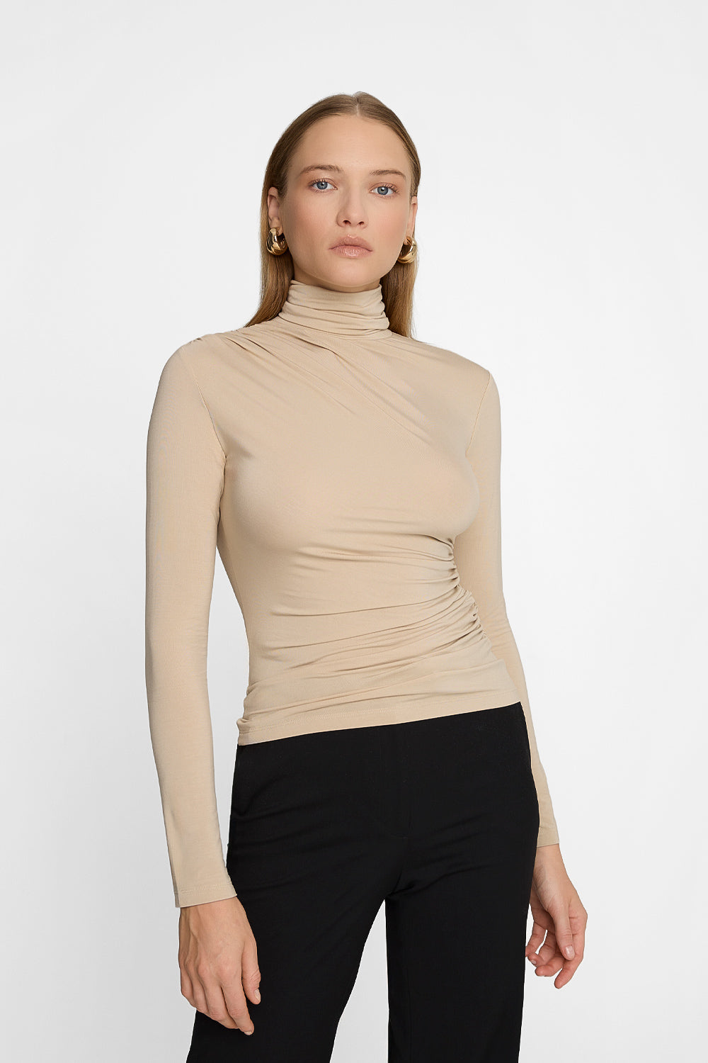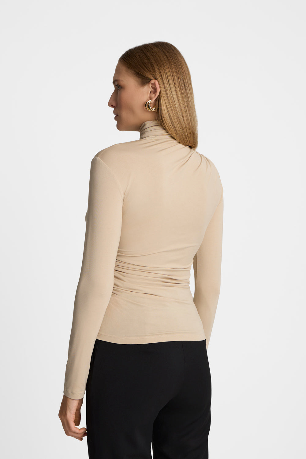 Piaskowa bluzka z bambusa z golfem.