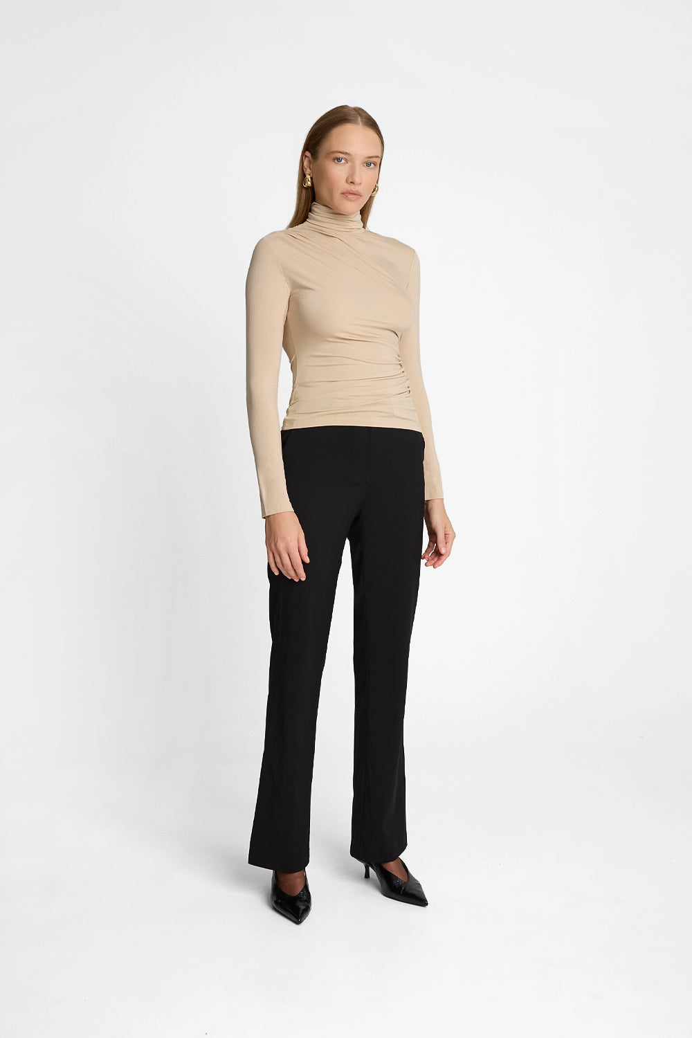 Piaskowa bluzka z bambusa z golfem.
