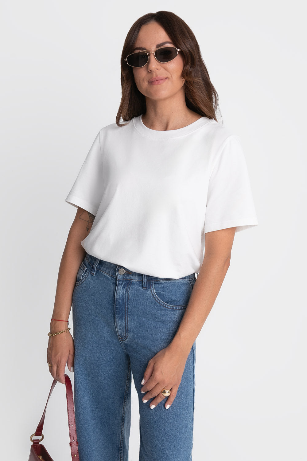 Fason typu regular fit sprawia, że biały wydłużony T-shirt damski idealnie sprawdzi się zarówno do codziennych, jak i bardziej eleganckich stylizacji. Zakładaj go pod marynarkę, łącz ze zwiewnymi spódnicami czy ulubionymi jeansami – w każdej z tych wersji biały T-shirt damski z ozdobnym cięciem z tyłu będzie prezentował się znakomicie!