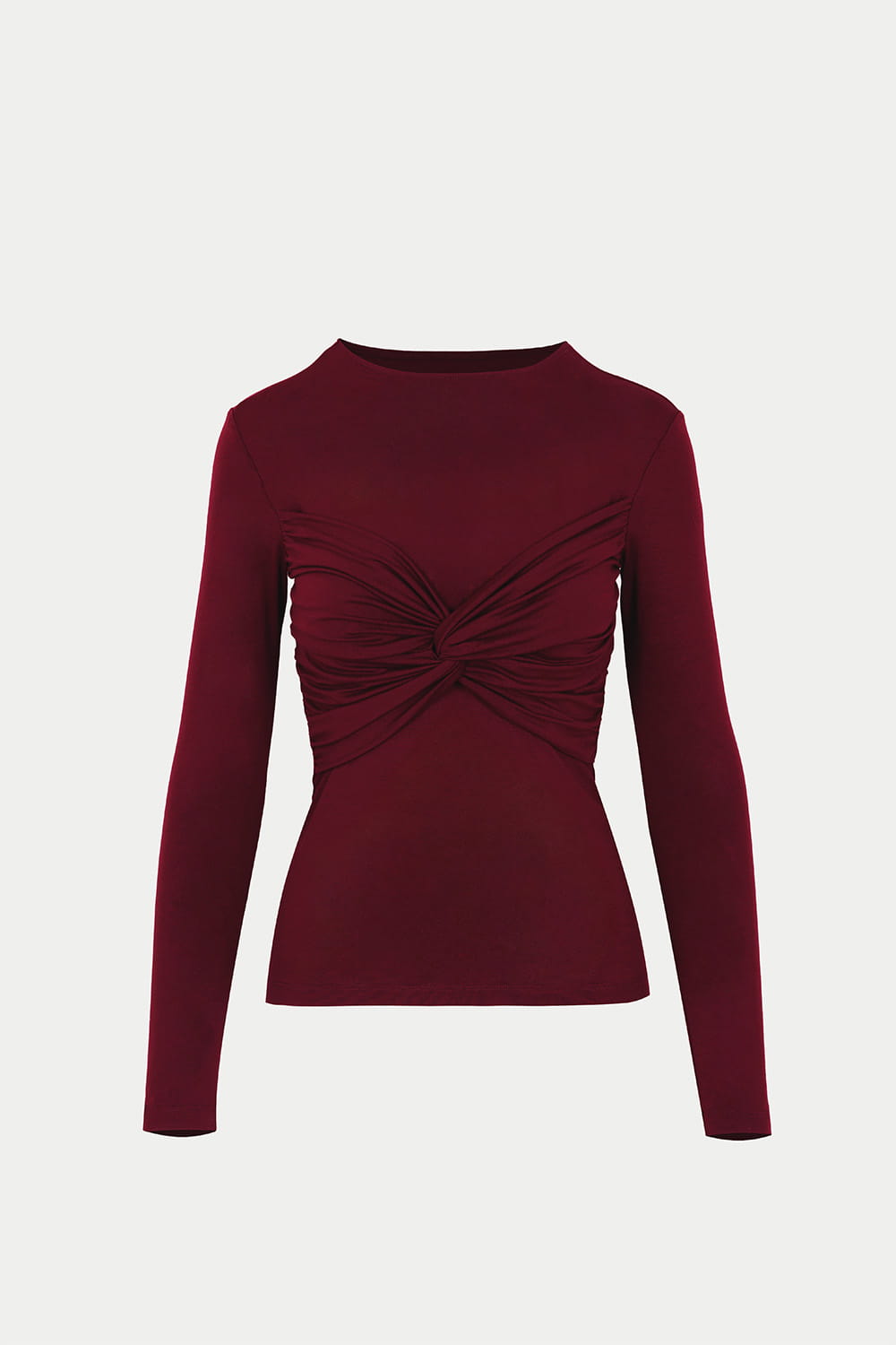 Bordowy longsleeve damski z dekoltem crew neck Miss Draped Burgundy