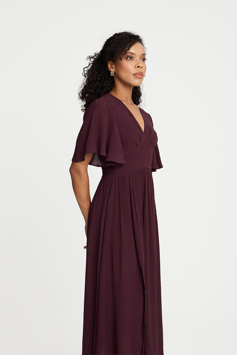 Kobieca, z klasą, idealna na lato – bordowa sukienka midi z wiskozy to hołd dla elegancji w praktycznym wydaniu. Uszyta z wysokiej jakości przewiewnej wiskozy zachwyca lekko marszczoną fakturą i pięknie układa się w ruchu. Dodatek poliestru zapobiega zaś gnieceniu się i zwiększa trwałość tkaniny. Bordowa długa sukienka z wiskozy z krótkimi rękawami to nowa wersja bestsellerowej Miss Iconic – w ulepszonym wydaniu model ten wzbogaciliśmy o elastyczną gumkę z tyłu w talii, dzięki któremu Miss Scarlet jeszcze lepiej dopasowuje się do sylwetki! Długość midi z podkreśloną talią i rozkloszowanym dołem sprawia, że bordowa sukienka midi z wiskozy z krótkimi rękawami prezentuje się niezwykle kobieco i stylowo.Drapowania pod linią talii dodają całości objętości i lekkości, a dekolt V pięknie wysmukla szyję i eksponuje obojczyki. Podwójna warstwa materiału na górze i krótsza, niewidoczna spódniczka w formie podszewki zapobiegają prześwitywaniu, a kryty zamek z boku ułatwia zakładanie bordowej długiej sukienki z wiskozy z dekoltem V. Miss Scarlet to doskonała propozycja na wszelkie letnie okazje – od codziennych spacerów po wyjątkowe okazje. Kieszenie dodają jej praktycznego wymiaru, a głęboki burgundowy odcień pięknie współgra zarówno ze złotą, jak i srebrną biżuterią. Ta elegancka bordowa sukienka midi z wiskozy z dekoltem V łączy wygodę z wyrafinowaniem – przekonaj się sama!