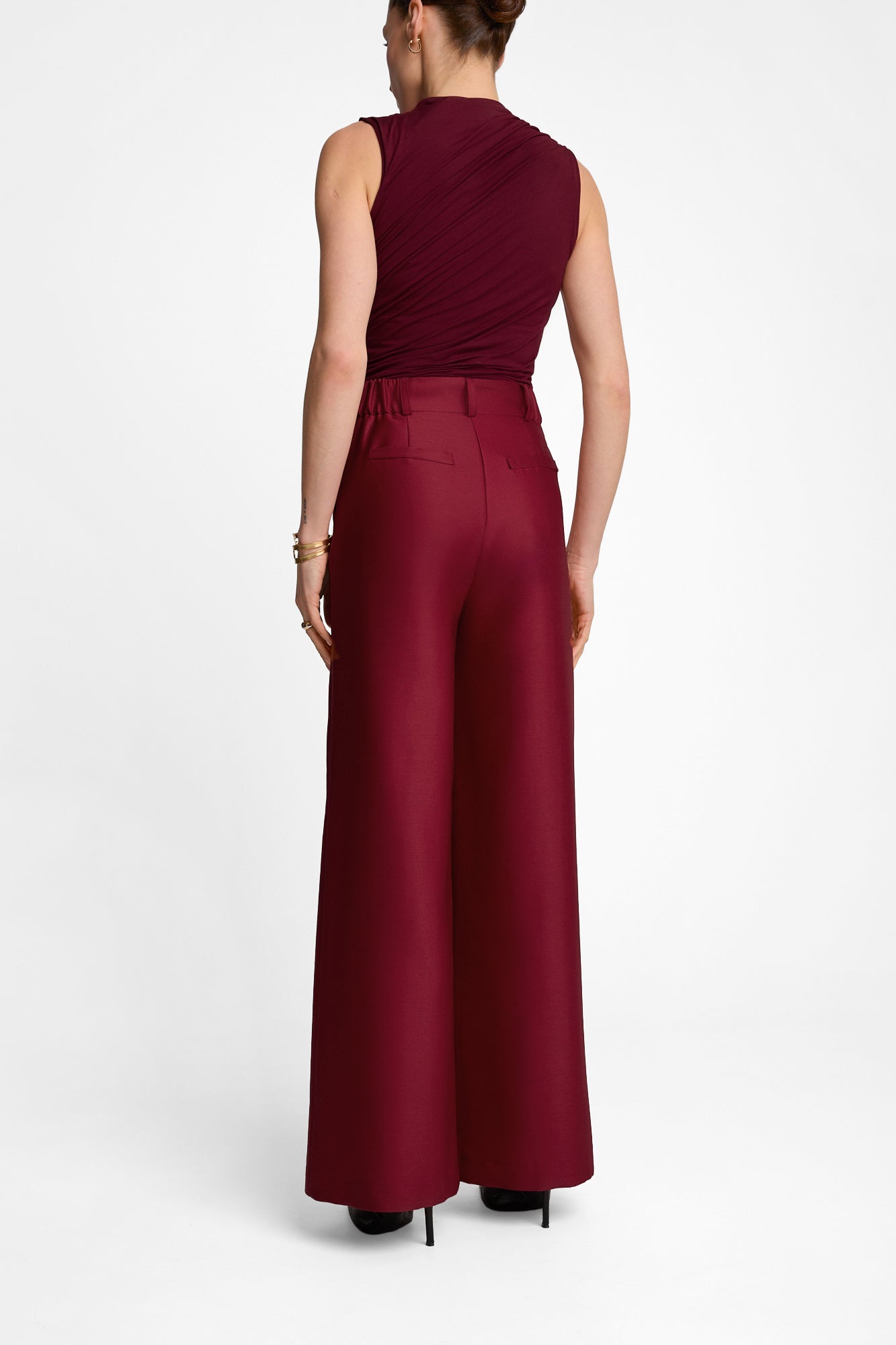 Spodnie Miss Milano Burgundy to elegancka propozycja o wyraźnie ponadczasowym charakterze, zaprojektowana z myślą o stylizacjach łączących klasę z nowoczesną swobodą. Głęboki, bordowy odcień nadaje całości szlachetności i sprawia, że model doskonale odnajduje się zarówno w wieczorowych zestawieniach, jak i w bardziej codziennym, dopracowanym wydaniu.