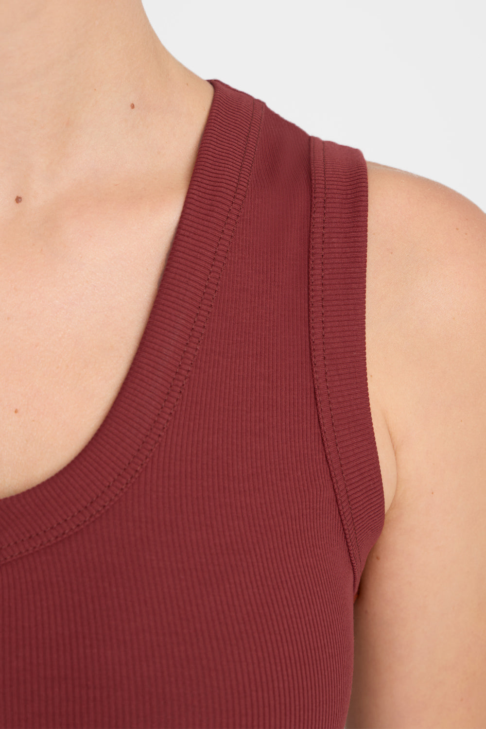 Jeśli znudziły Ci się już tank topy i szukasz czegoś z większym dekoltem, mamy coś dla Ciebie! Miss Ribby to brązowy top damski na grubych ramiączkach, z wycięciem w kształcie litery V, które subtelnie podkreśla biust. Szyjemy go z prążkowanej bawełny wysokiej jakości. Dodatek elastanu sprawia, że dzianina jest elastyczna i świetnie dopasowuje się do ciała.