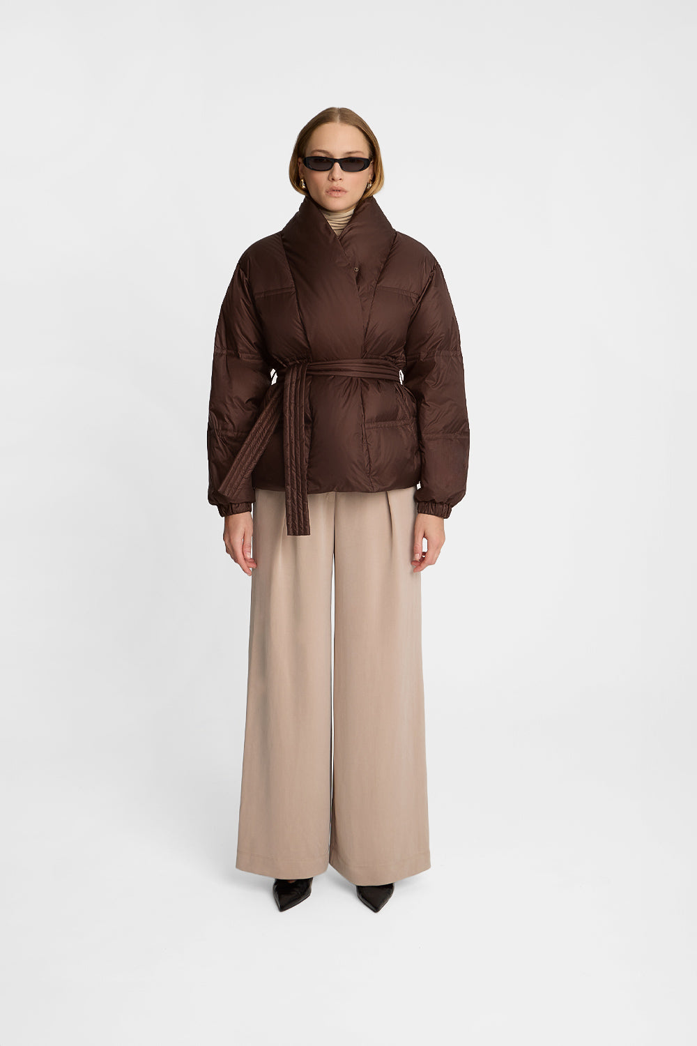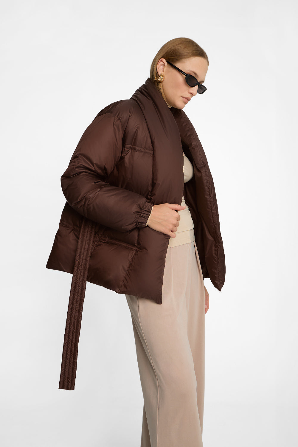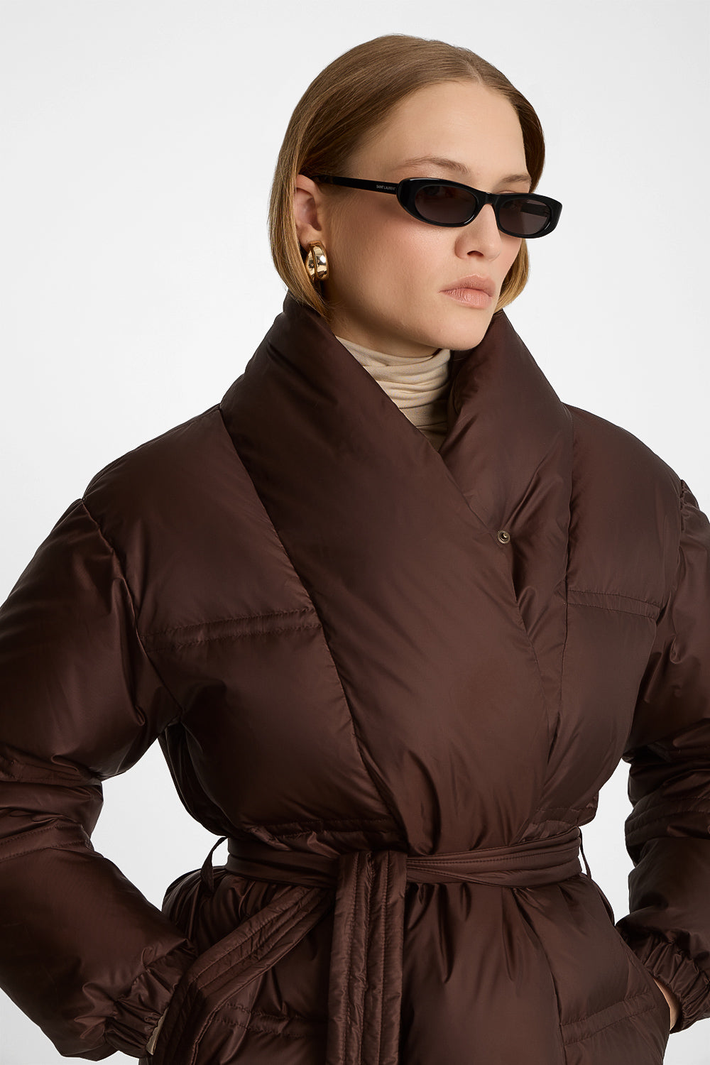 Czekoladowa kurtka puchowa damska Miss Fascination to propozycja dla kobiet, które szukają harmonii między klasyką a nowoczesnością. W kolekcji ANSIN znajdziesz także płaszcze i kurtki w innych odcieniach, idealne na chłodniejsze dni.
