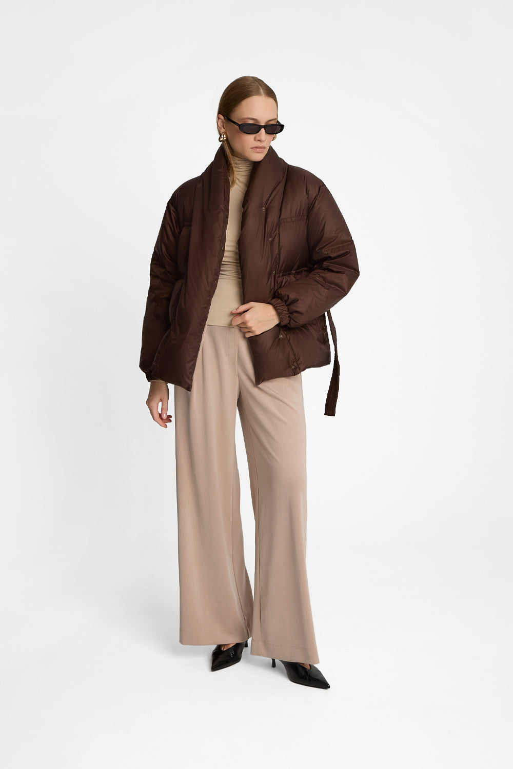 Czekoladowa kurtka puchowa damska Miss Fascination to propozycja dla kobiet, które szukają harmonii między klasyką a nowoczesnością. W kolekcji ANSIN znajdziesz także płaszcze i kurtki w innych odcieniach, idealne na chłodniejsze dni.