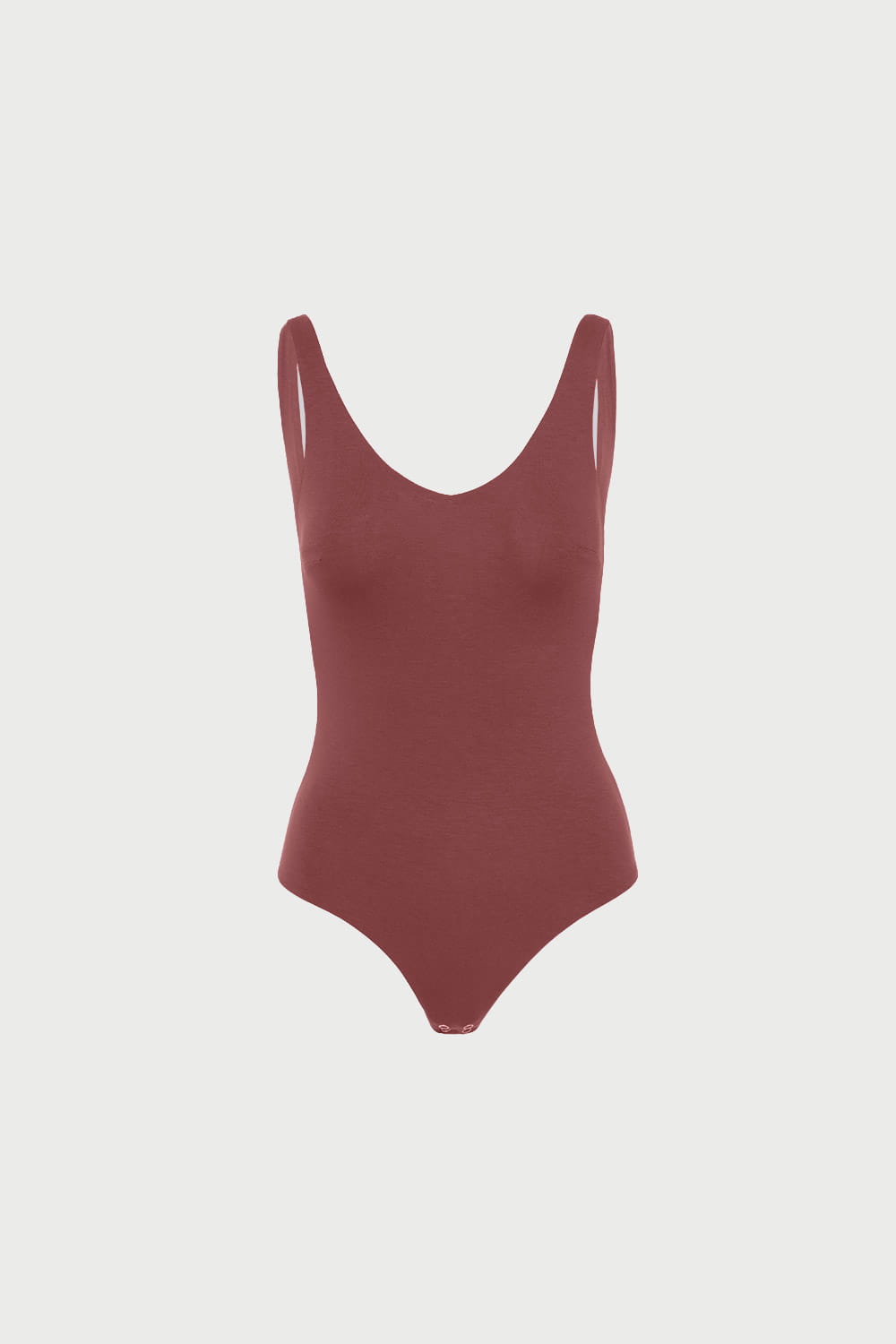 Brązowe body damskie v-neck na ramiączkach Miss Pretty Red Brown