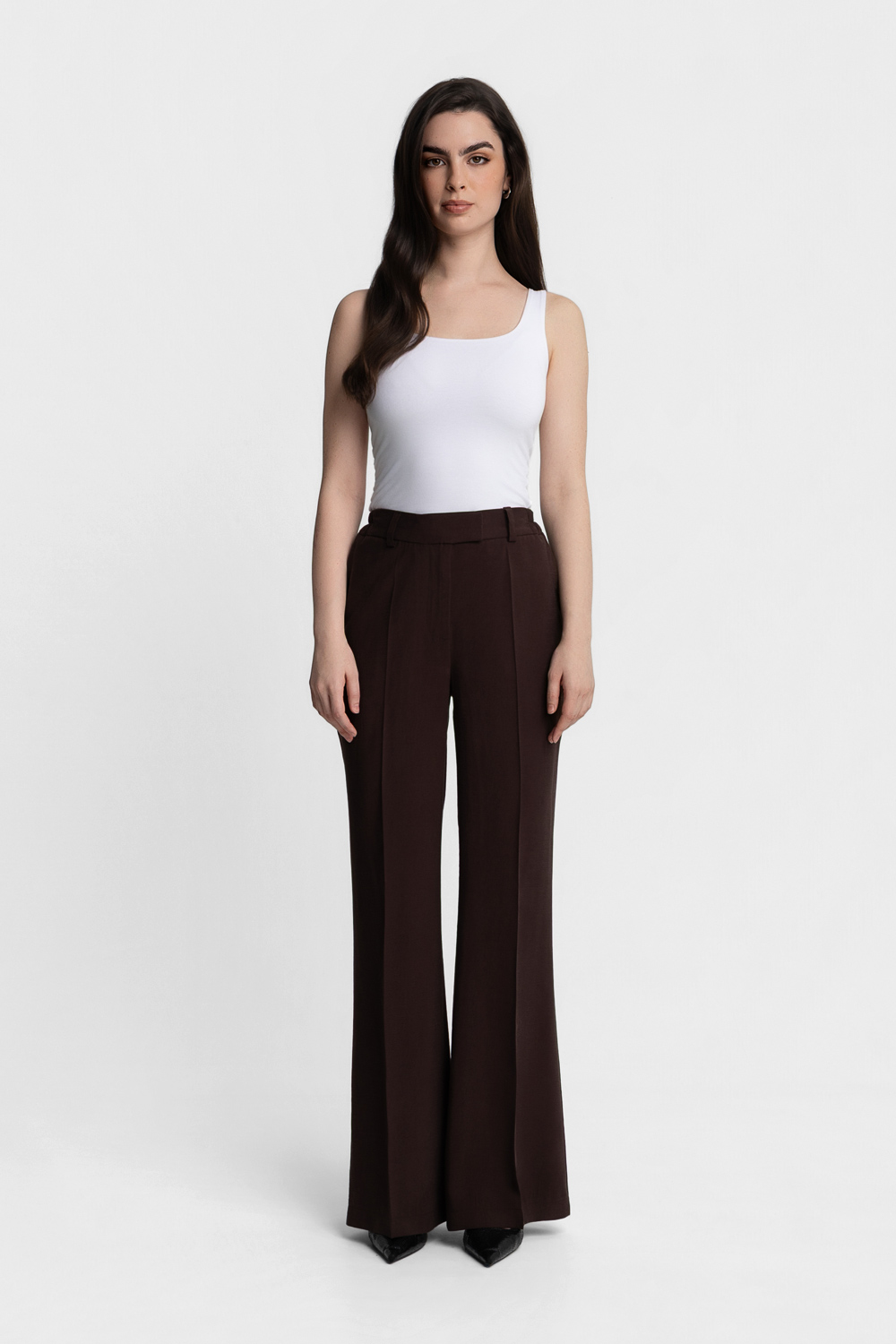 Spodnie Miss Savvy Chocolate świetnie prezentują się zarówno w eleganckich stylizacjach z koszulą i marynarką, jak i w codziennych zestawach z bluzką, topem czy lekkim swetrem.