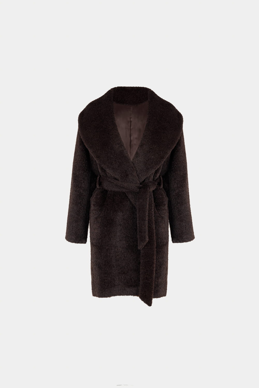 Szukasz czegoś, co połączy elegancję z wygodą i charakterem? Brązowy płaszcz wełniany damski Miss Special z włosiem to doskonała propozycja dla kobiet, które cenią sobie unikatowe kroje i wysoką jakość materiałów. Wykonany z luksusowej tkaniny o składzie: 52% alpaki oraz 48% wełny płaszcz zimowy damski brązowy, zapewni Ci ciepło w chłodniejsze dni, jednocześnie dodając stylu każdej stylizacji. Płaszcz posiada szlafrokowy fason, który nie jest zapinany – jedynie wiązany w pasie eleganckim paskiem, dzięki czemu idealnie podkreśla talię. Długość midi do kolan oraz szalowy kołnierz sprawiają, że płaszcz nabiera ponadczasowej elegancji, a jego czekoladowy-brąz doda głębi i wyrazistości każdej stylizacji. Wewnętrzne tasiemki pozwalają związać wełniany płaszcz od środka, co zapobiega jego otwieraniu się podczas noszenia. Brązowy płaszcz damski midi wyłożony jest wiskozową podszewką, a dzięki dwóm kieszeniom w szwach oraz kroju oversized, jest nie tylko elegancki, ale i praktyczny. Świetnie sprawdzi się zarówno na eleganckie wyjścia, jak i w codziennych stylizacjach z i sneakersami, dodając im modowego sznytu.