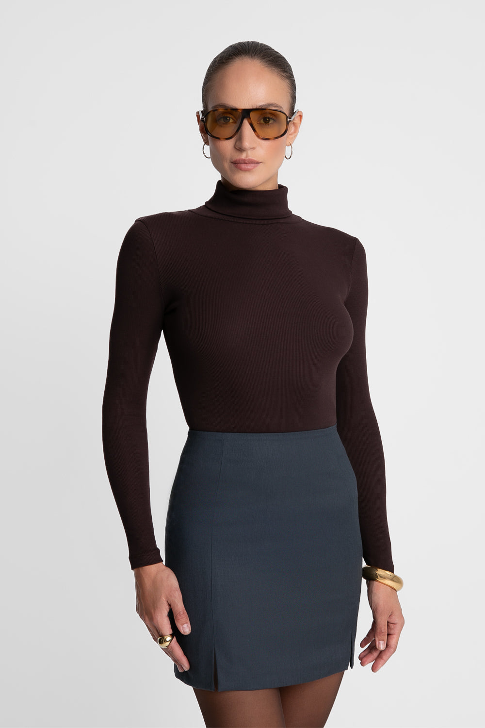 Golf Miss Daily Dark Chocolate to połączenie klasyki i nowoczesnego minimalizmu. Uszyty z miękkiej, prążkowanej dzianiny – elastyczny, wygodny i idealnie dopasowuje się do sylwetki. Wysoki golf otula szyję, a dopasowany krój pięknie podkreśla figurę, nie ograniczając ruchów. To basic premium, który sprawdzi się zarówno w eleganckich stylizacjach do biura, jak i w codziennych, bardziej swobodnych zestawach.