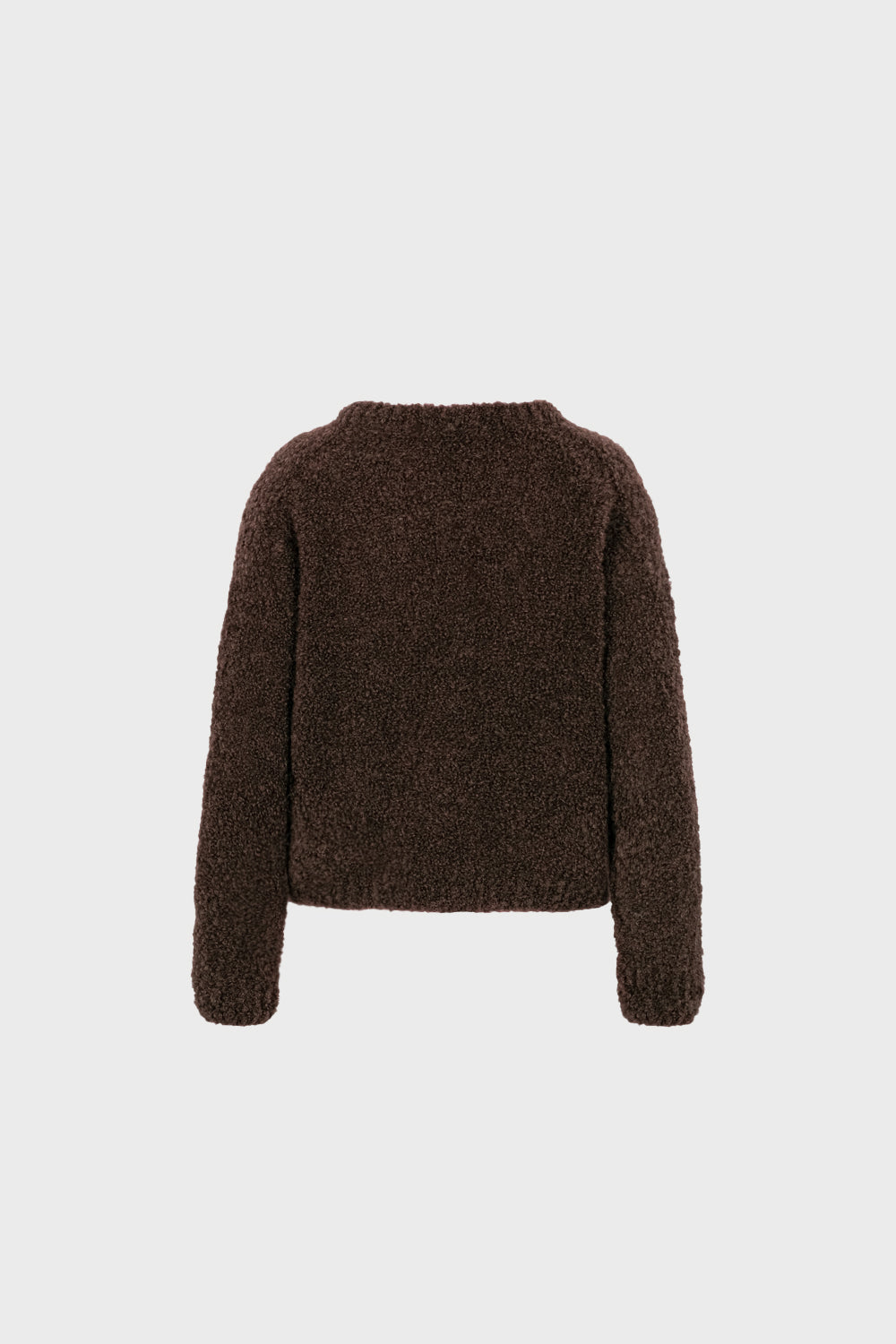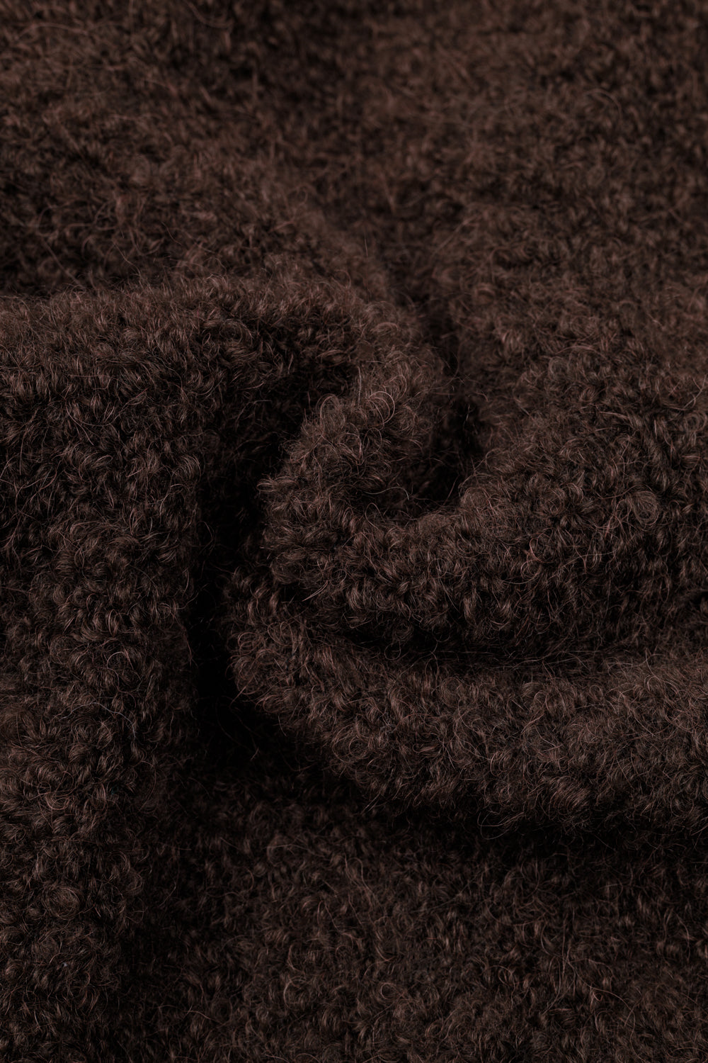 Zanurz się w miękkość i ciepło brązowego swetra damskiego boucle Miss Fluffy Chocolate. Wykonany z wyjątkowej przędzy, zachwyca przyjemną w dotyku, pluszową fakturą oraz lekkością. Czekoladowy odcień dodaje stylizacjom głębi i elegancji, a oversize’owy krój z dekoltem typu crew neck sprawia, że model idealnie wpisuje się w charakter codziennej wygody i ponadczasowego stylu.