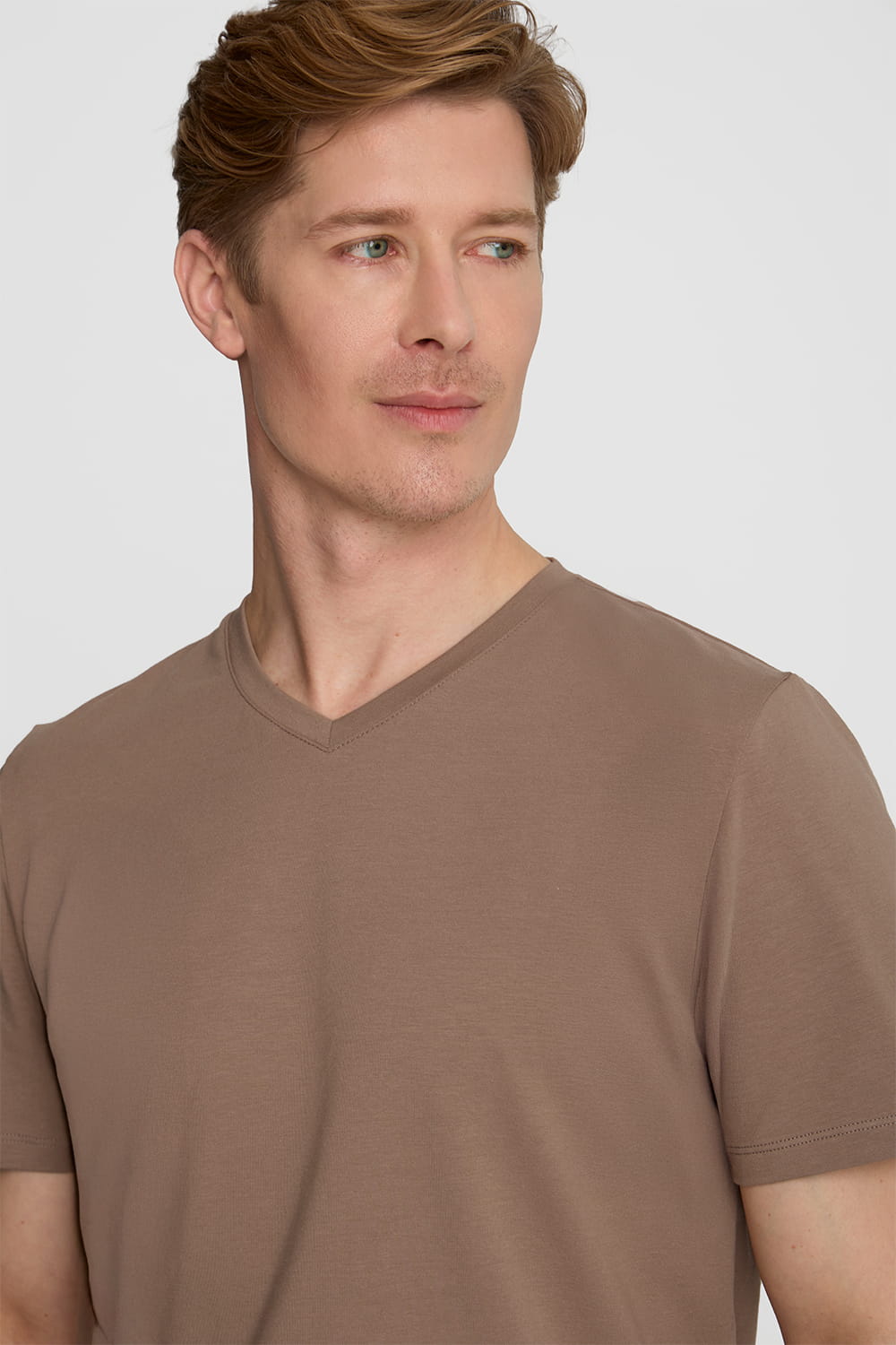 Brązowa koszulka męska z dekoltem w szpic Mr Everyday Brown
