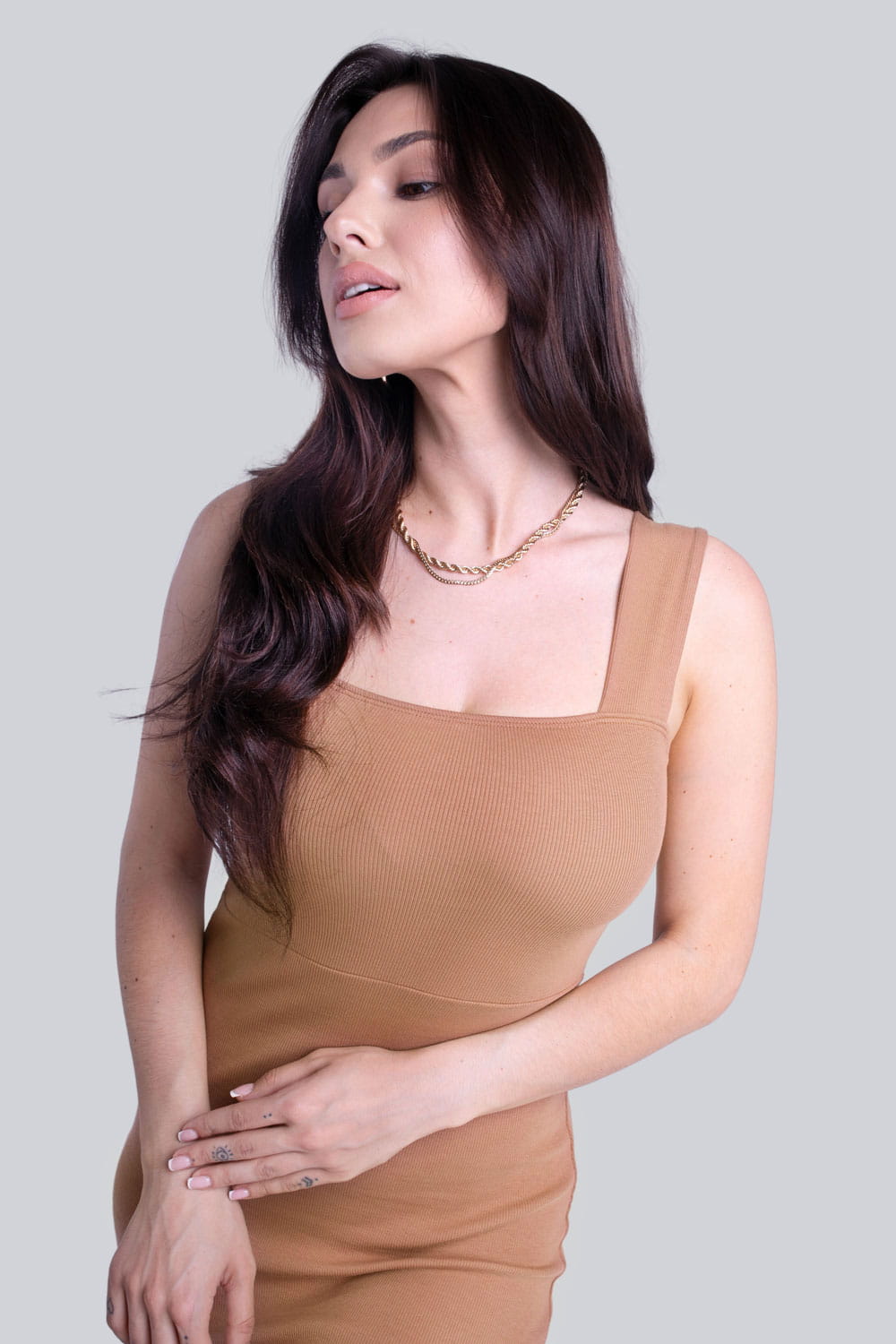 Wybór sukienki, która będzie uniwersalnym elementem garderoby wcale nie należy do tych łatwych. W ANSIN długo szukaliśmy tej idealnej, aż w końcu postanowiliśmy stworzyć ją sami. Z dumą przedstawiamy Miss Classy - camelową sukienkę basic z kwadratowym dekoltem.Dopasowana do sylwetki, z dekoltem karo i z prawdziwie mięsistej bawełny. Sprawia to, że camelowa obcisła sukienka basic sprawdzi się w prakycznie każdej sytuacji. Możesz połączyć ją zarówno z elegenckimi szpilkami, jak i ulubionymi snekersami.