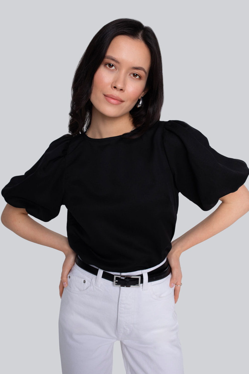 Czarna bluzka z bufiastymi rękawami Miss Ladylike Black