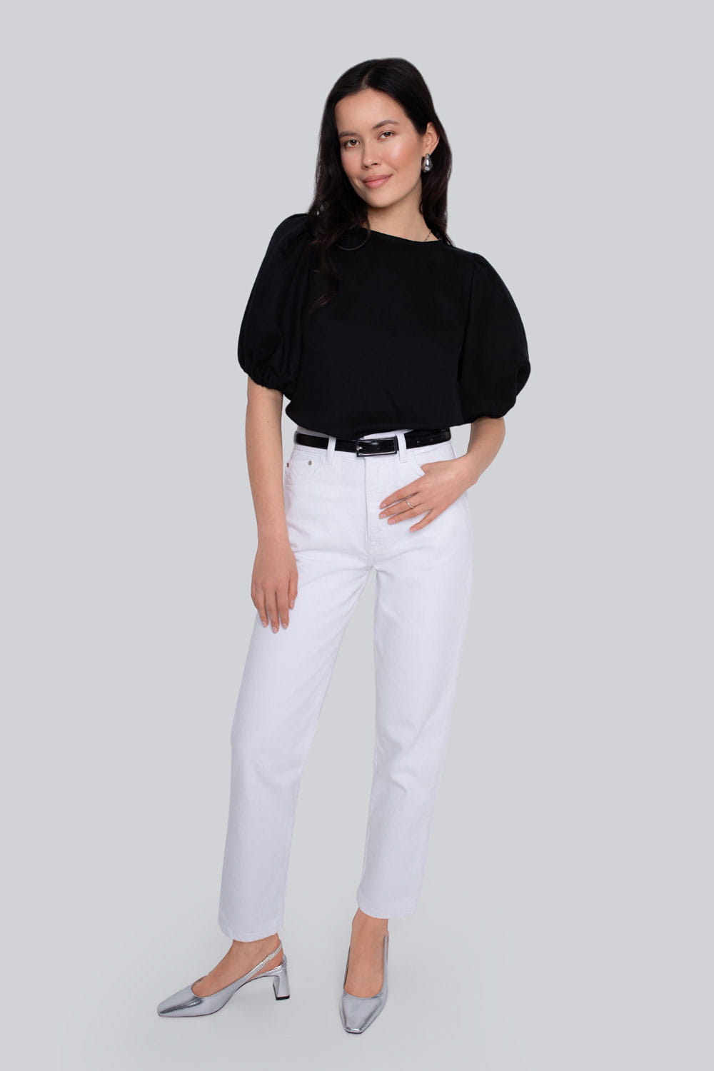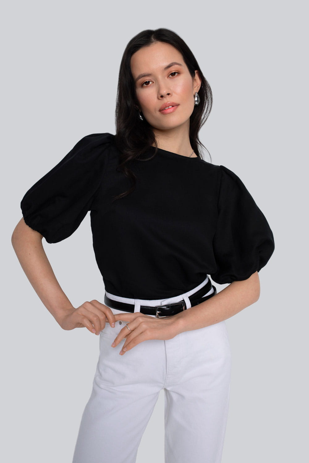 Historia bufek sięga XVII wieku. To właśnie wtedy projektanci zaczęli tworzyć efektowne rękawy o dużej objętości, które z ochotą nosiła szlachta i arystokracja, a dziś także i my. Choć bufki nigdy na dobre nie wyszły z mody, w ostatnim czasie przeżywają prawdziwy renesans! Jeśli Ty też masz do nich słabość, zwróć uwagę na naszą czarną damską bluzkę z bufiastymi rękawami. Uszyta z wysokiej jakości tkaniny, będącej połączeniem i lnu, jest niezwykle przewiewna. Prosty, klasyczny krój z niedużym, okrągłym dekoltem sprawia, że czarna elegancka bluzka z bufiastymi rękawami doskonale sprawdzi się do codziennych stylizacji, jak również na większe wyjścia. Z powodzeniem możesz nosić ją do jeansów, jak i garniturowych czy wełnianych – przekonaj się sama!