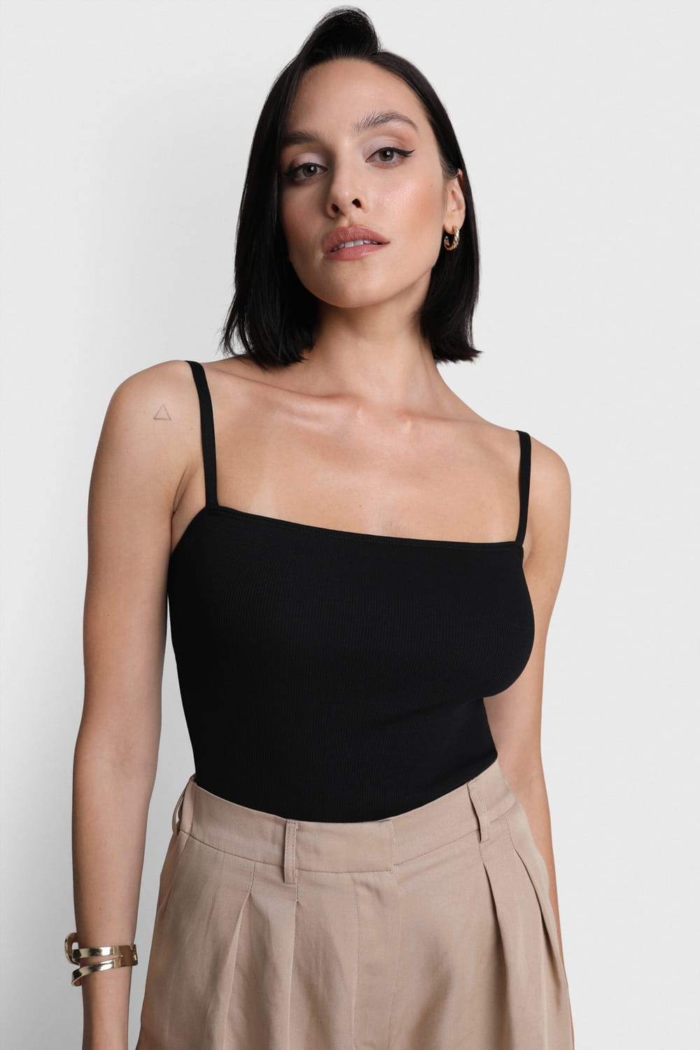 Czarny prążkowany top na ramiączkach Miss Naked Black