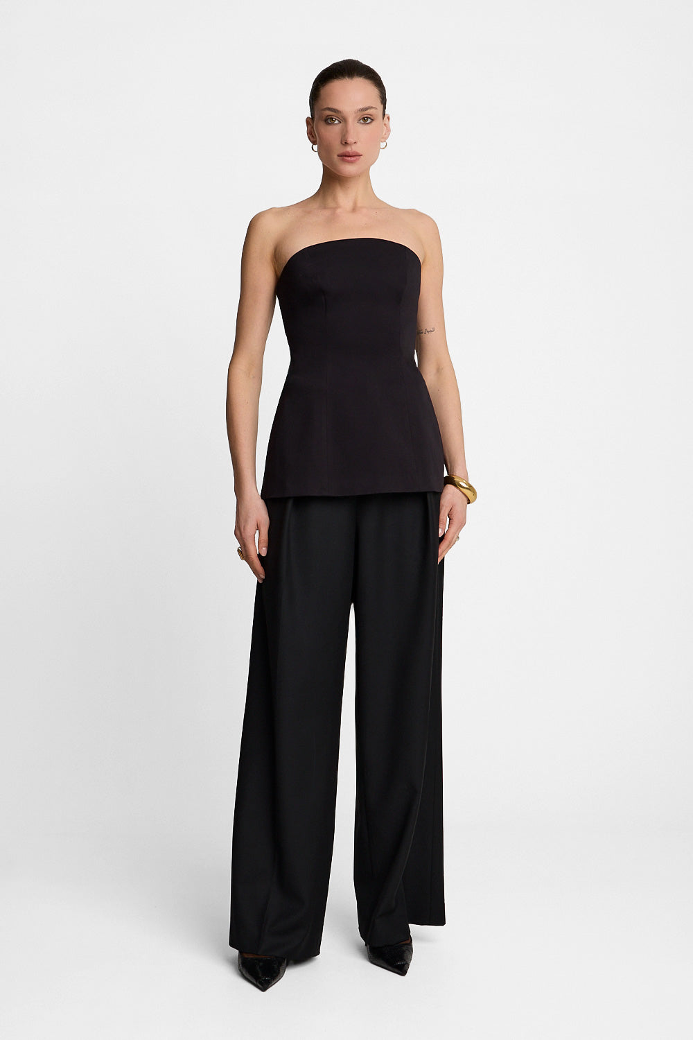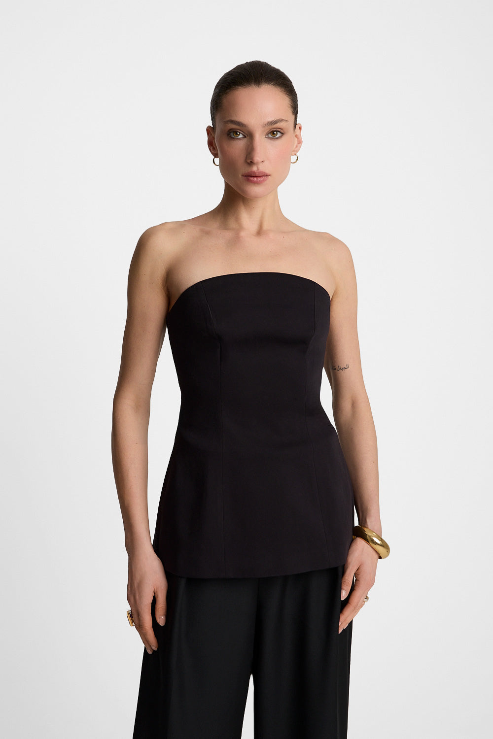 Top został wykonany z lekko elastycznego, wysokiej jakości materiału, który dobrze pracuje w ruchu i elegancko układa się na ciele. To projekt polskiej marki, szyty w Polsce z dbałością o detale, konstrukcję i trwałość. Doskonale sprawdzi się w bardzo eleganckich stylizacjach — zestawiony z szerokimi spodniami, spódnicą czy marynarką — ale także jako mocny element wieczorowego outfitu.