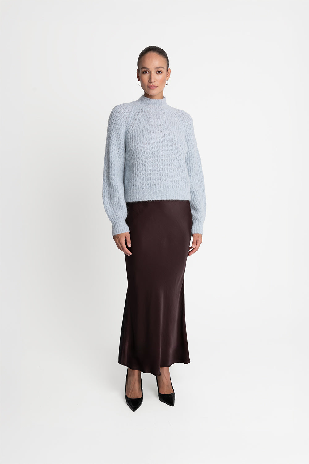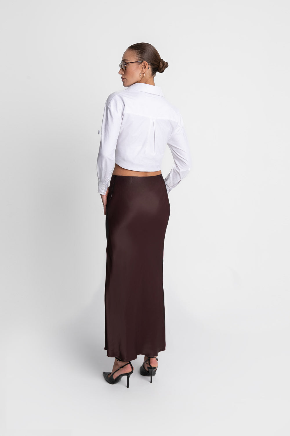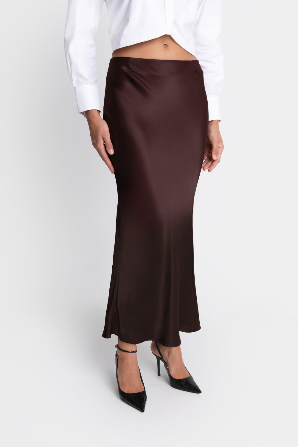 Uszyta ze skosu, z wysokogatunkowej, satynowanej wiskozy – pięknie opływa sylwetkę, podkreślając jej kształty i dodając lekkości ruchom. Długość maxi, sięgająca niemal do ziemi, sprawia, że jest to propozycja zarówno na specjalne okazje, jak i do codziennych stylizacji. Zapinana na zamek z boku, gwarantuje wygodę i perfekcyjne dopasowanie w talii.