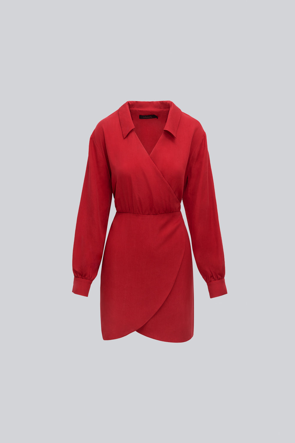 Czerwona krótka sukienka kopertowa z długim rękawem Miss Allure Red