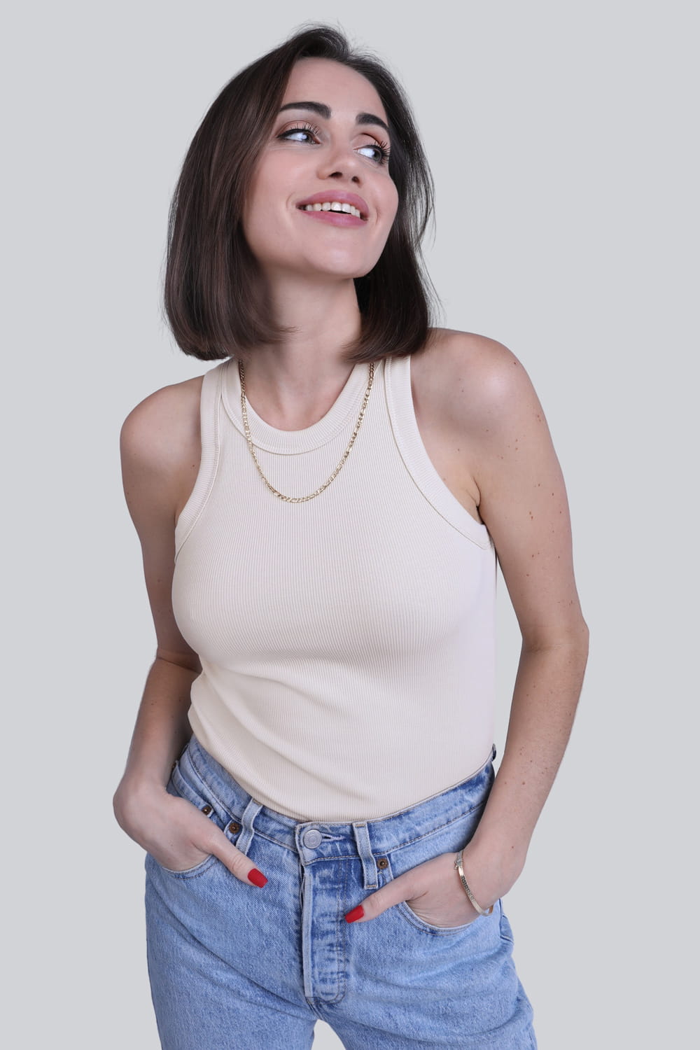 Do czego założyć damski top-bokserkę ecru? Na to pytanie nie ma jednej prawidłowej odpowiedzi! Miss Summerly Vanilla to prosty, uniwersalny fason, który możesz wystylizować na wiele różnych sposobów. Co powiesz na midi spódnicę w drobne kwiatki, delikatne klapki na obcasie i słomkowy koszyk? To wersja idealna na spotkanie z koleżankami lub randkę w ciepły, letni dzień. Równie dobrze nasza koszulka bokserka ecru będzie prezentować się z krótkimi, lnianymi lub wełnianymi spodenkami z wysokim stanem i trampkami lub sneakersami. Śmiało możesz nosić ją do czego tylko zechcesz! Przyjemność użytkowania zapewni Ci także wysokiej jakości materiał, zaś dopasowany, mocno wycięty krój, pięknie podkreśli sylwetkę.