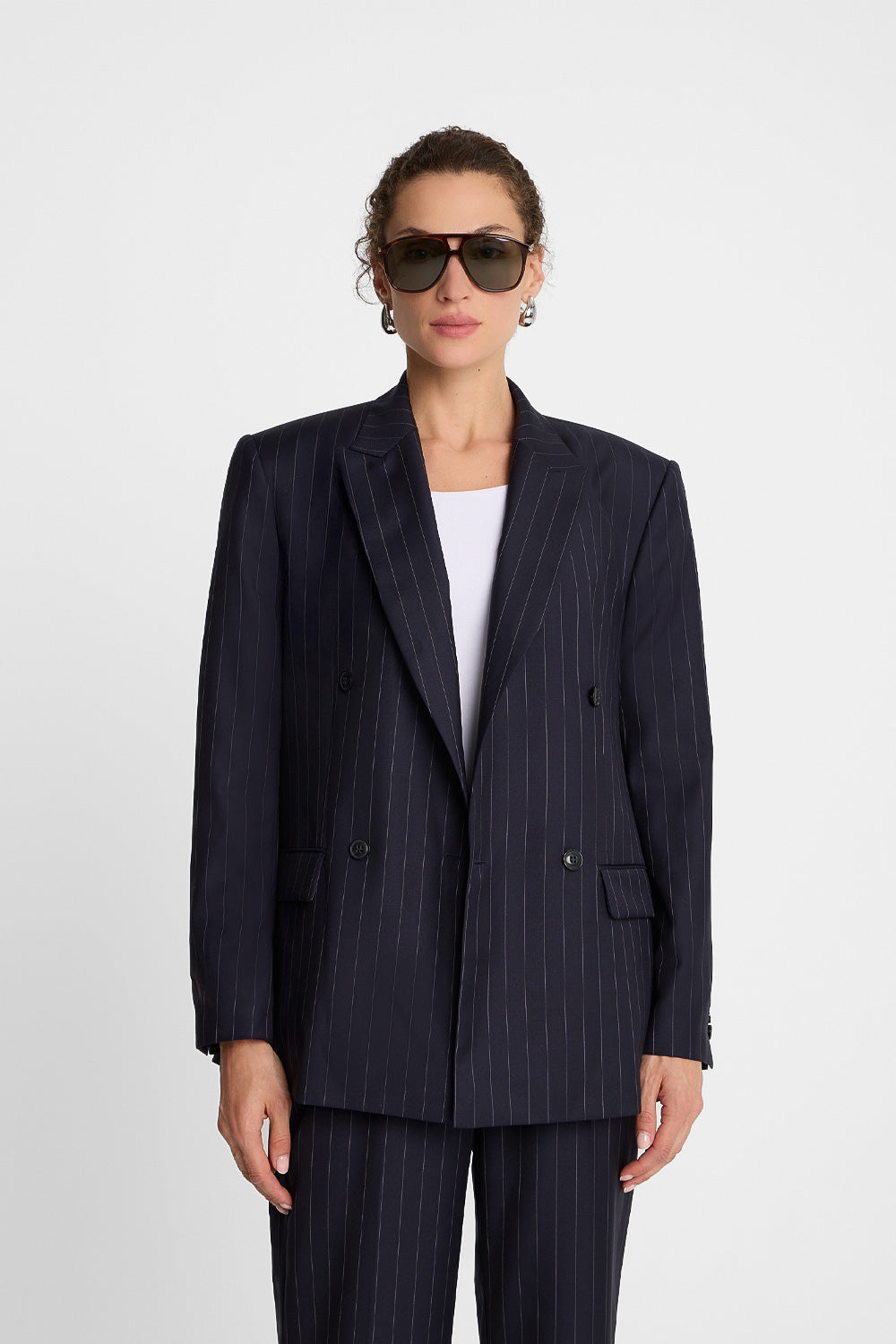 Granatowa marynarka dwurzędowa damska w prążki Miss Ensamble Navy