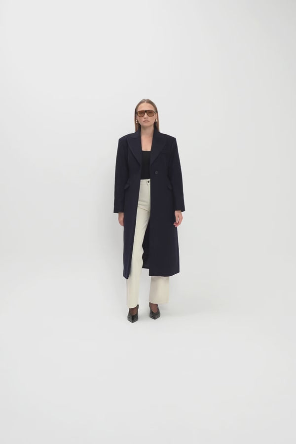 Granatowy odcień i dopracowany krój sprawiają, że to płaszcz niezwykle uniwersalny – idealny zarówno na co dzień, jak i w eleganckich zestawach. To polski produkt premium, który pozostanie w Twojej szafie na wiele sezonów.