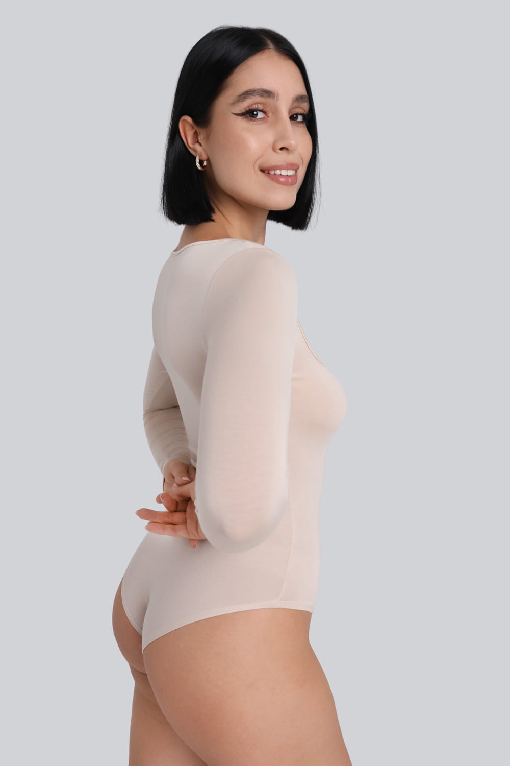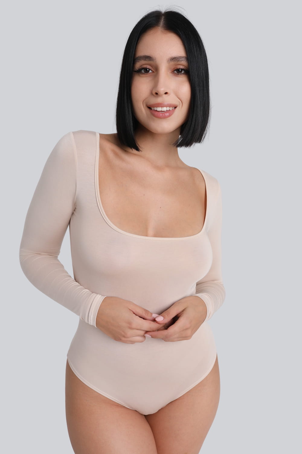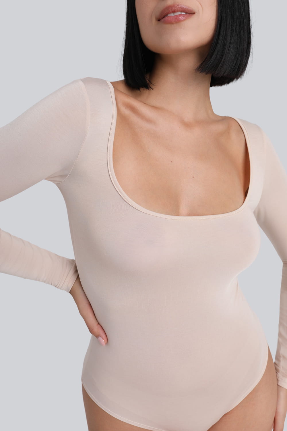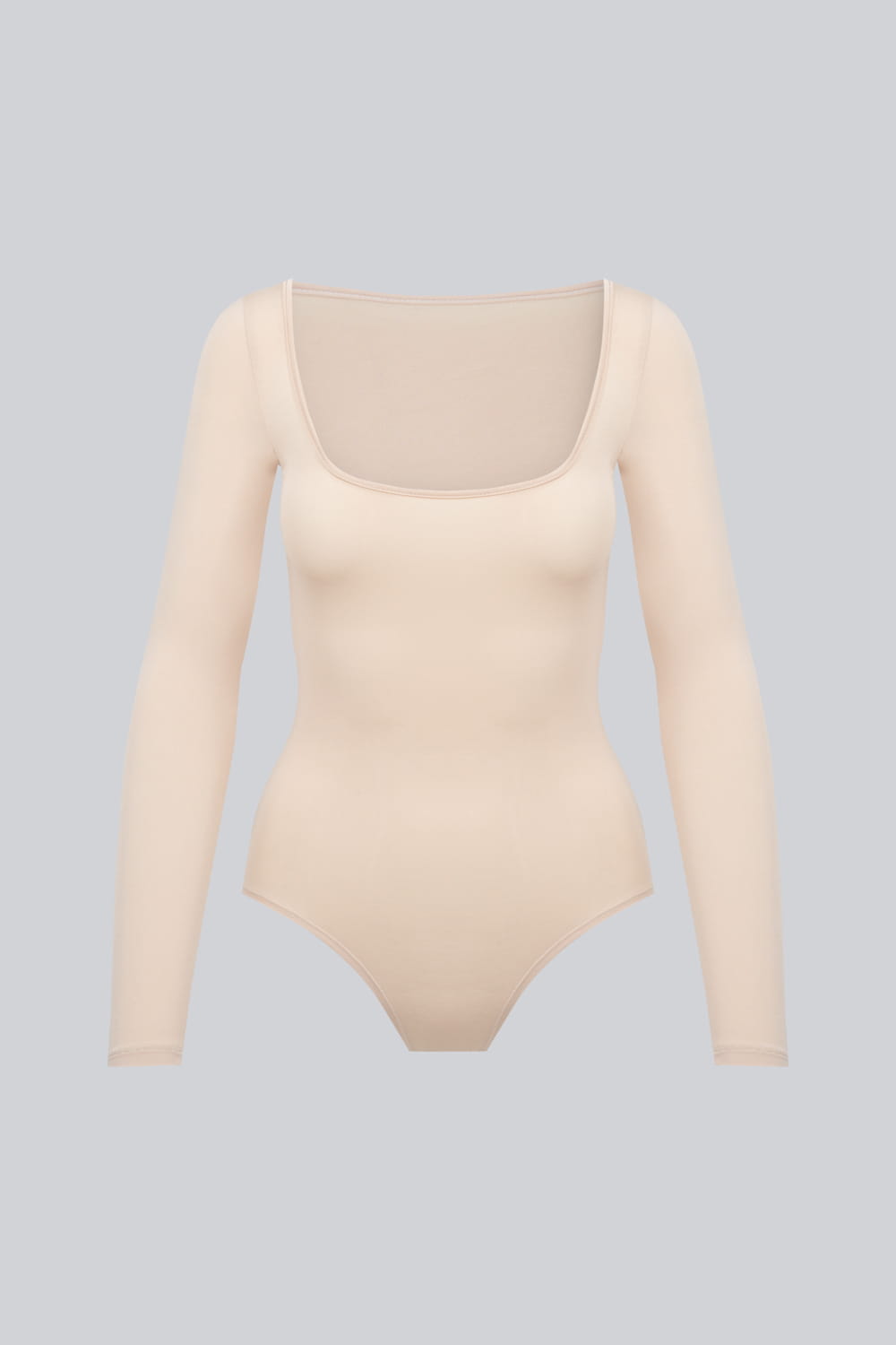 Jasnobeżowe body bieliźniane z długim rękawem Miss Invisible Longsleeve U-neck Sand