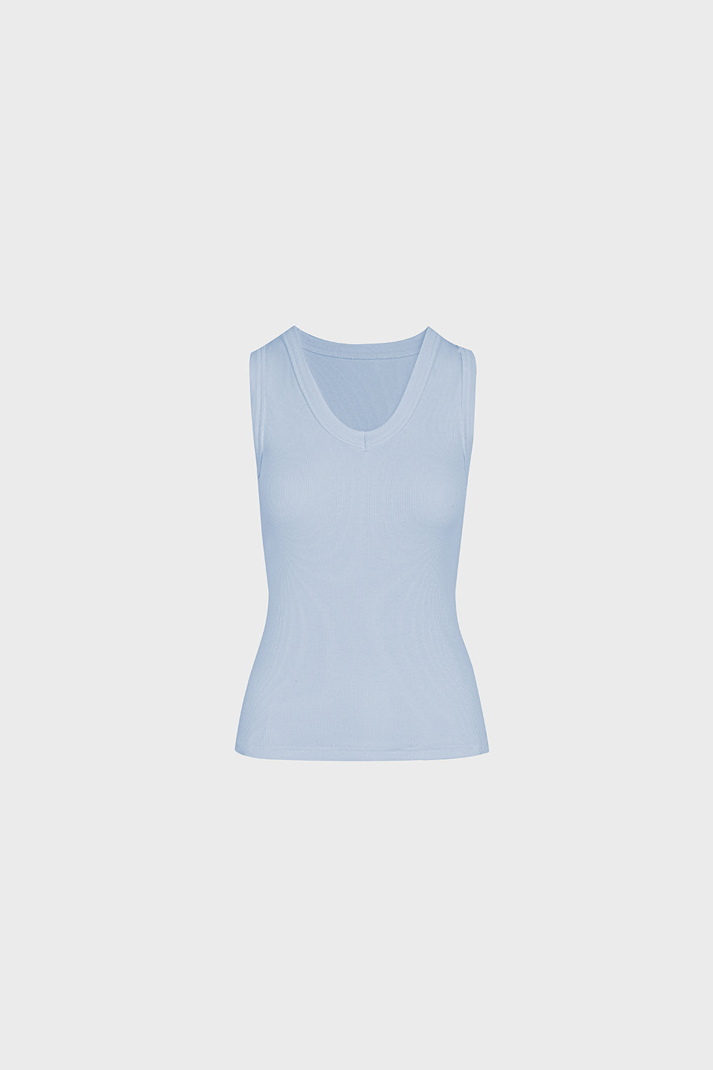 Jasnoniebieski top damski na grubych ramiączkach z dekoltem V Miss Ribby Light Blue
