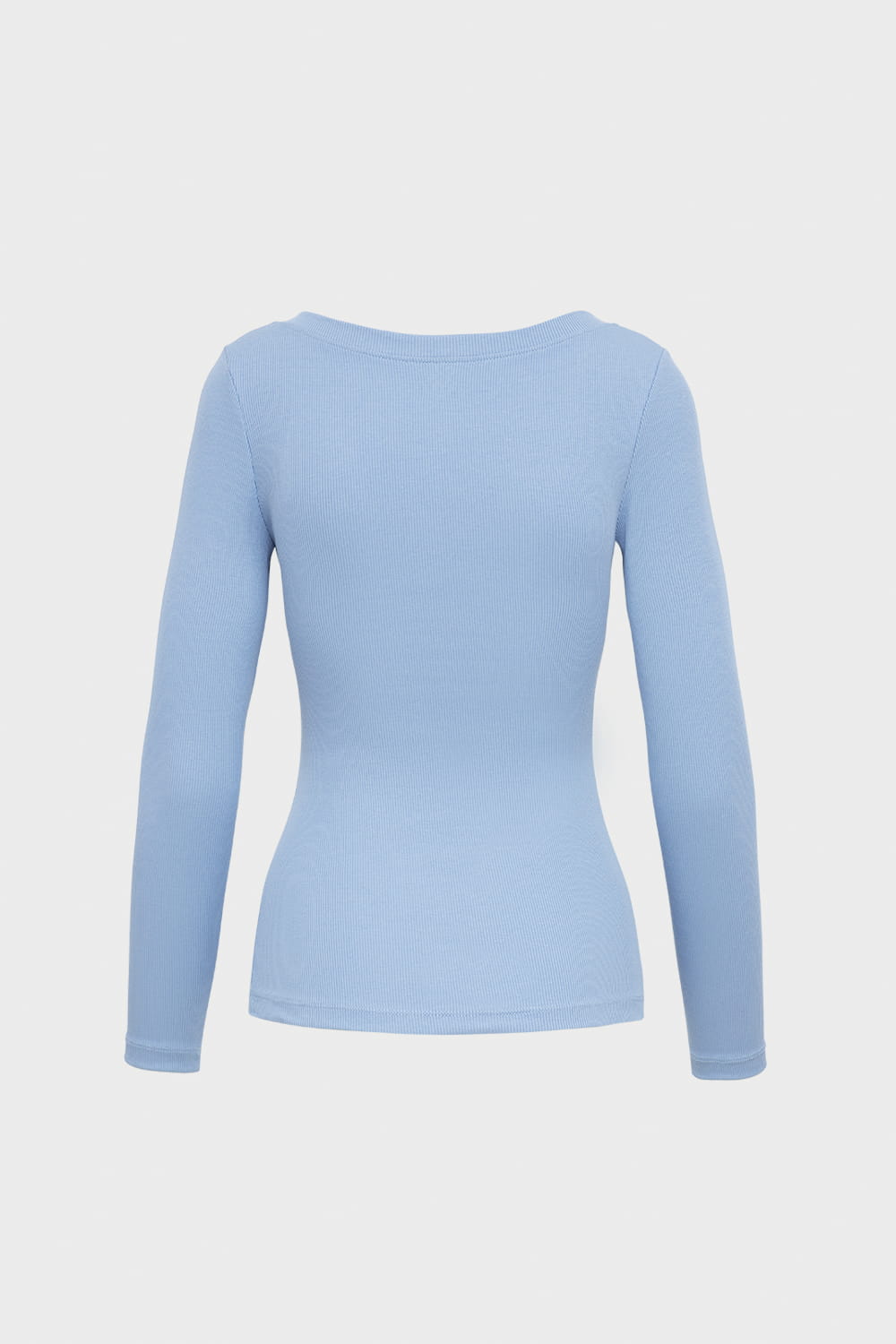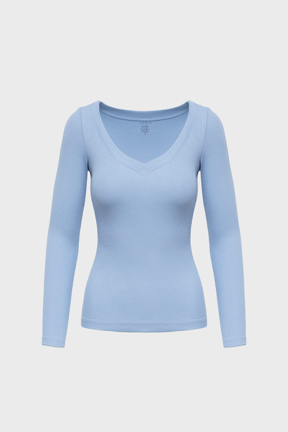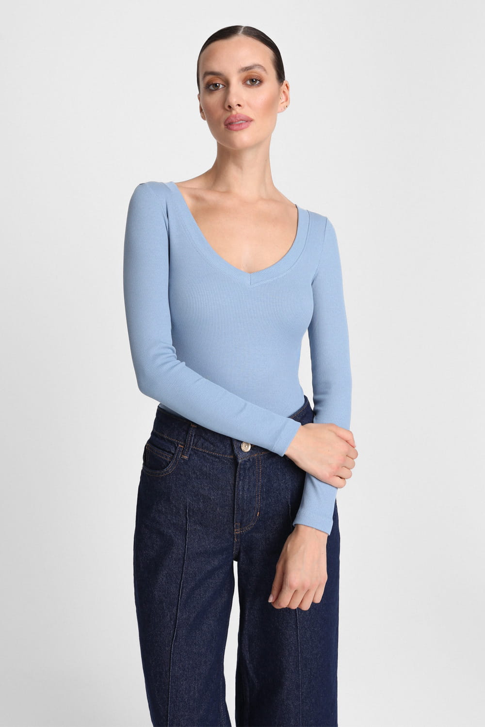 Odkryj jasnoniebieski longsleeve damski v-neck Miss Womanly Silver Blue
