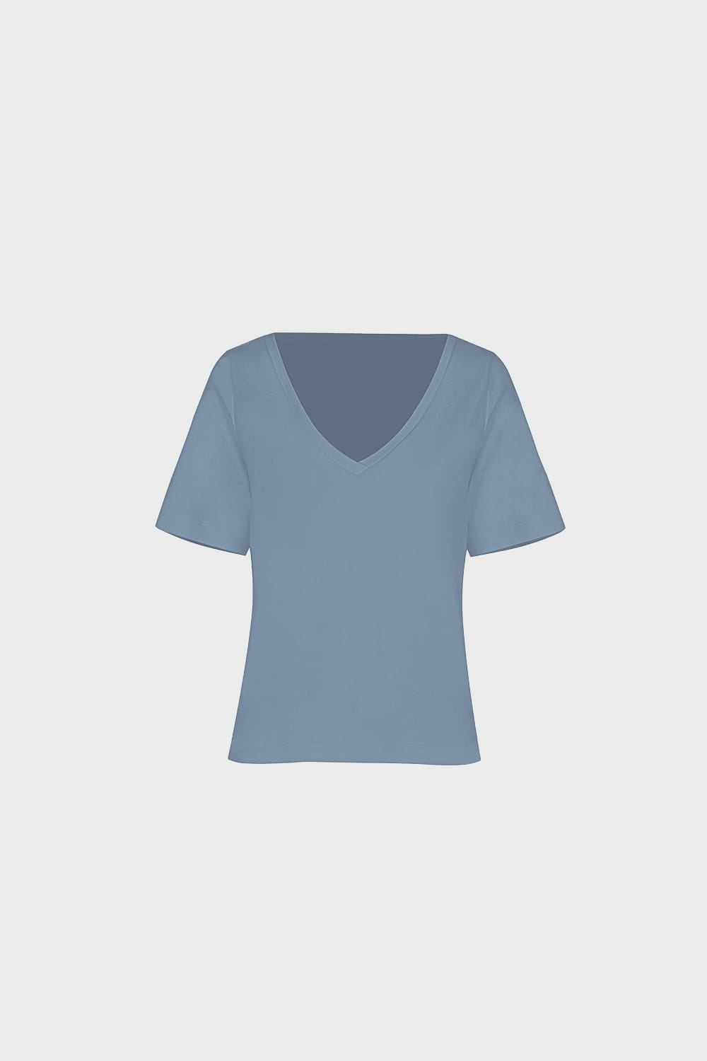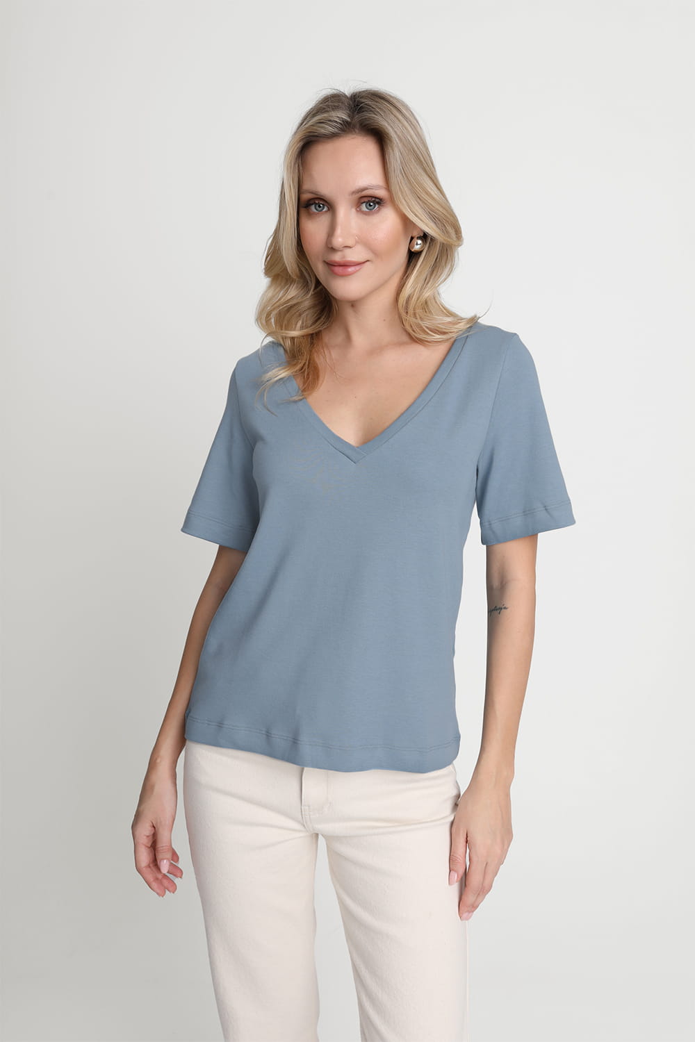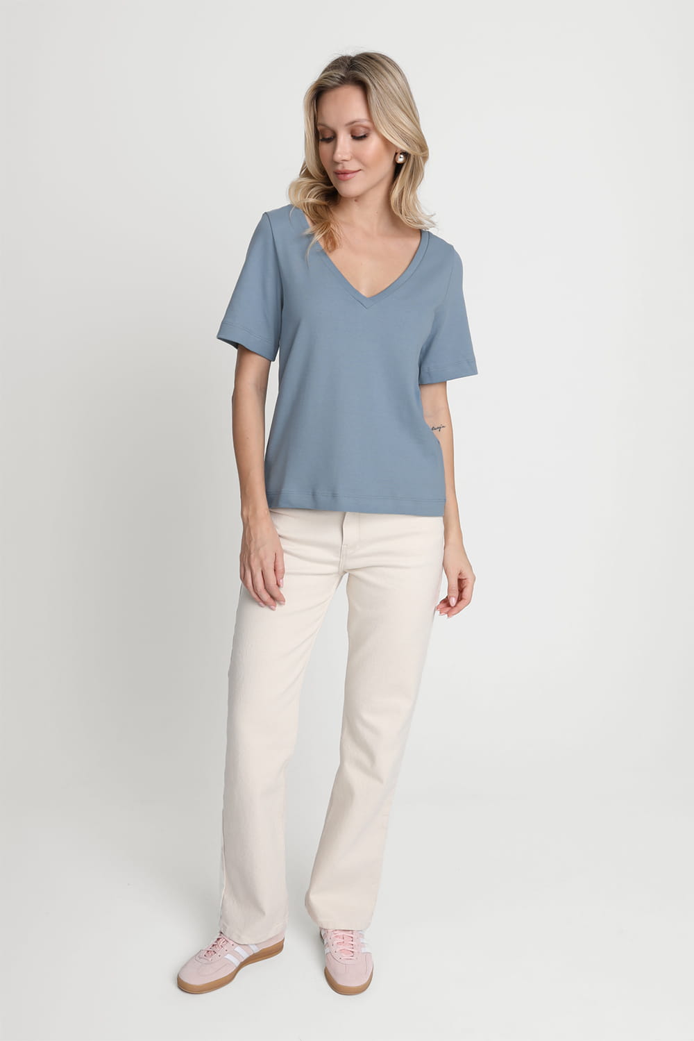 Jasnoniebieski luźny T-shirt damski z dekoltem V Miss Relaxed Silver Blue