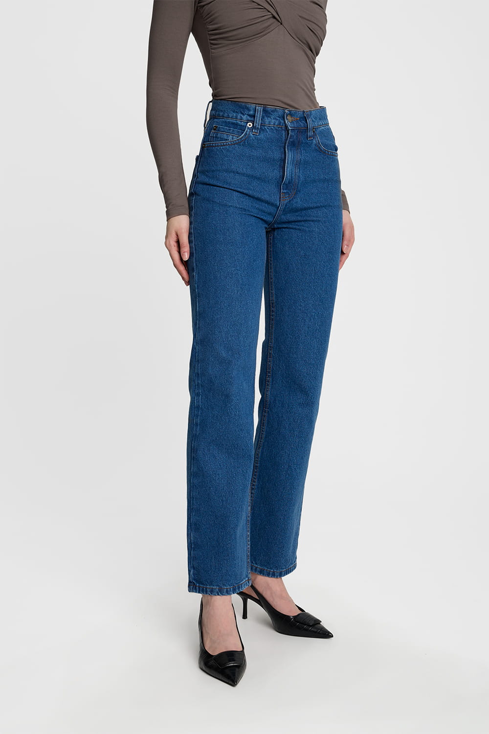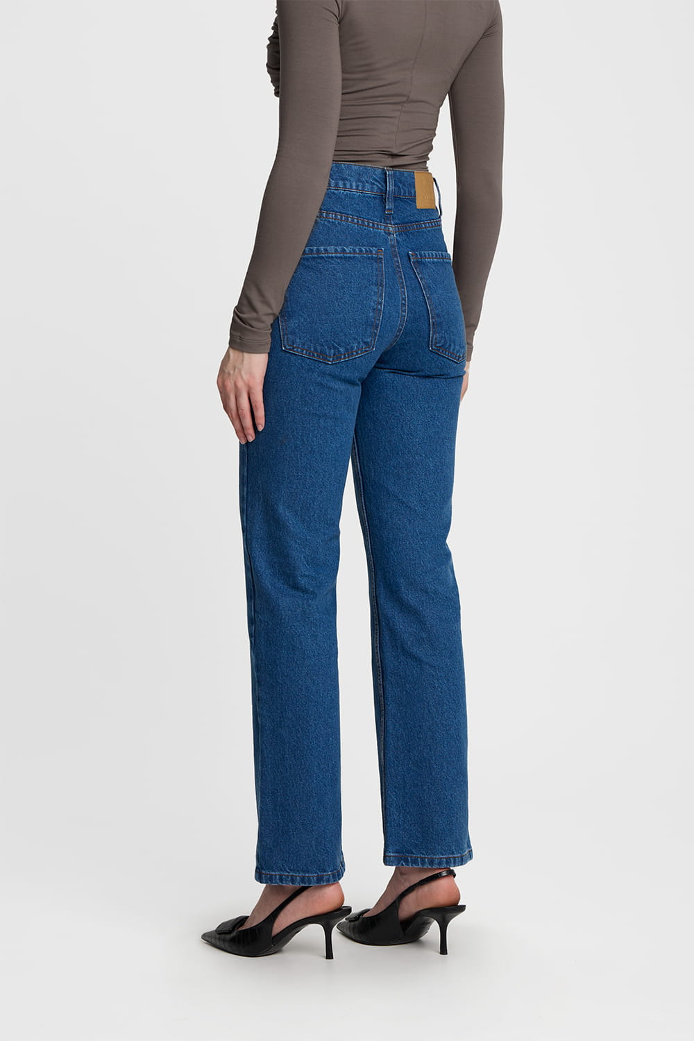 Jeansy damskie slim to ponadczasowy wybór, który sprawdzi się w przypadku każdej sylwetki. Wysoki stan optycznie wydłuża nogi, a prosta nogawka o długości nad kostkę dodatkowo pięknie je wysmukla. Dzięki temu, że jeansy damskie o prostym kroju slim szyjemy z bawełny z domieszką elastanu, Miss Everyday lekko dopasują się do sylwetki. Nowoczesnego sznytu dodaje im elegancki backpatch z logo (z tyłu) oraz logowany guzik w kolorze starego srebra. Przednie kieszenie dodatkowo ozdobiliśmy płaskimi, srebrnymi nitami. Klasyczny krój sprawia, że proste damskie jeansy slim z wysokim stanem i lekko zwężaną nogawką sprawdzą się zarówno na wyjście ze znajomymi, jak i – w zestawieniu z marynarką – na bardziej formalne okazje.
