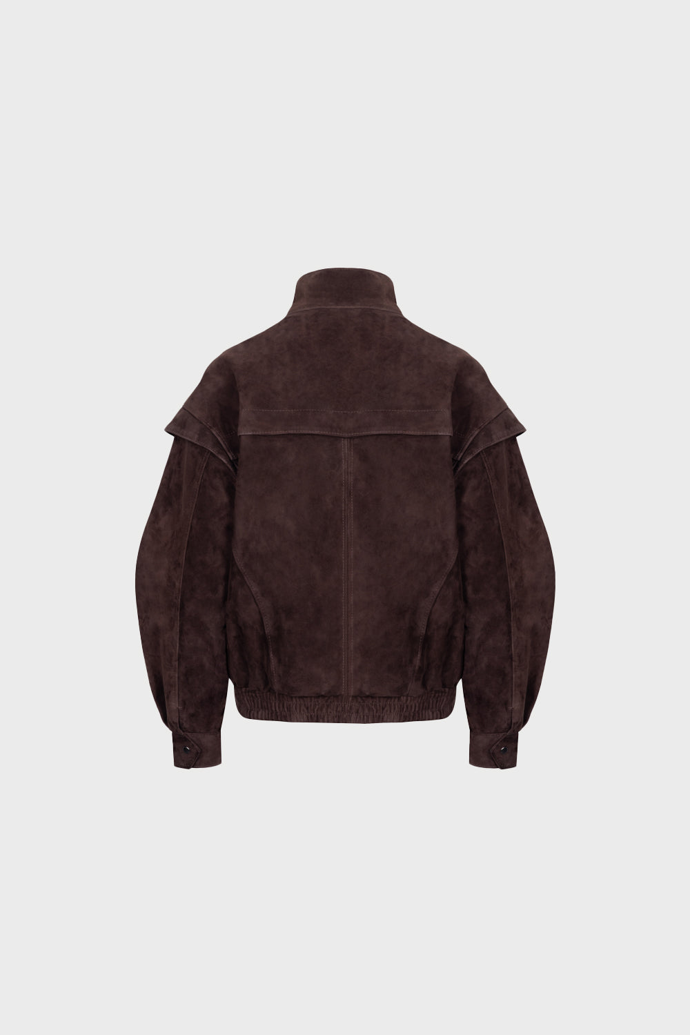 Fason kurtki inspirowany jest klasyczną bomberką, jednak zaprojektowany w nowoczesnej, lekko oversizowej formie. Opuszczona linia ramion dodaje nonszalancji, a zakładki na rękawach budują objętość i nadają całości interesujący kształt. Ozdobne, przestrzenne cięcia podkreślają konstrukcyjny charakter kurtki i świadczą o wysokim poziomie rzemiosła.
