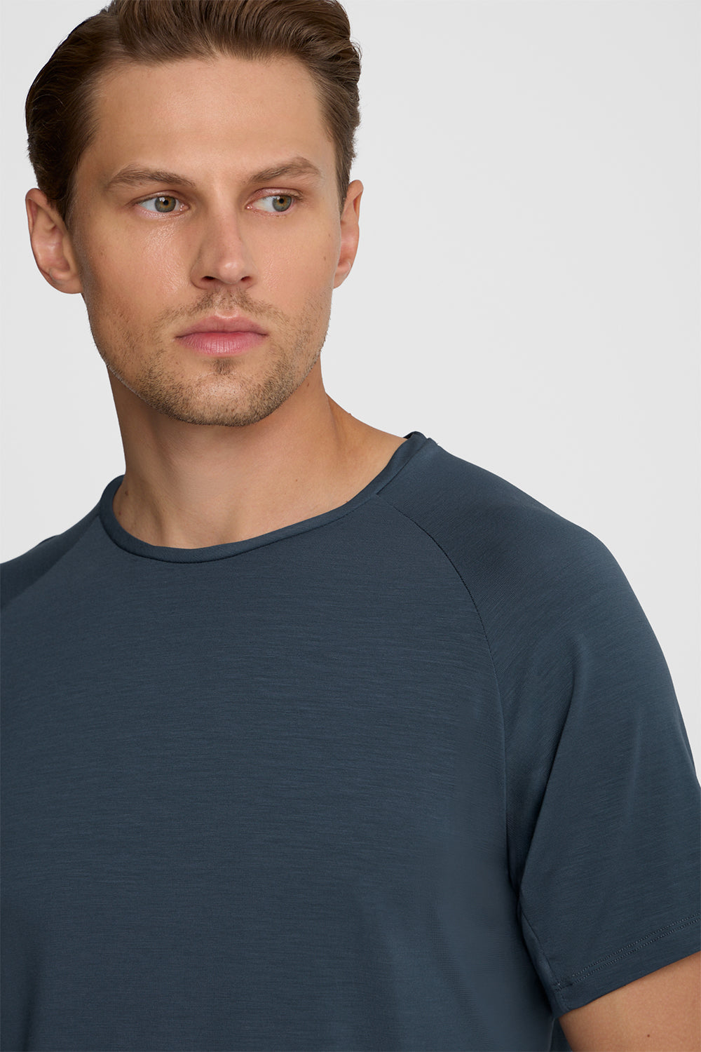 T-shirt ma prosty, lekko dopasowany fason, który dobrze układa się na sylwetce i nie krępuje ruchów. Wykonany został z wysokiej jakości dzianiny na bazie tencelu z dodatkiem elastanu. Materiał jest wyjątkowo gładki, miękki i przyjemny dla skóry, o delikatnie chłodzącym efekcie. Średnia grubość dzianiny pozwala koszulce dobrze trzymać formę, przy jednoczesnym zachowaniu lekkości i oddychalności.