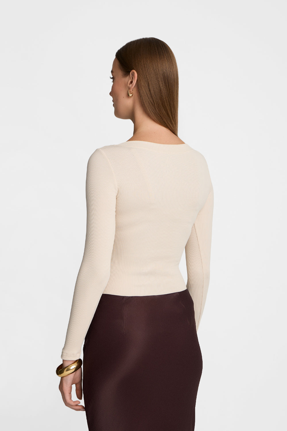 Piaskowy longsleeve damski v-neck Miss Womanly Vanilla