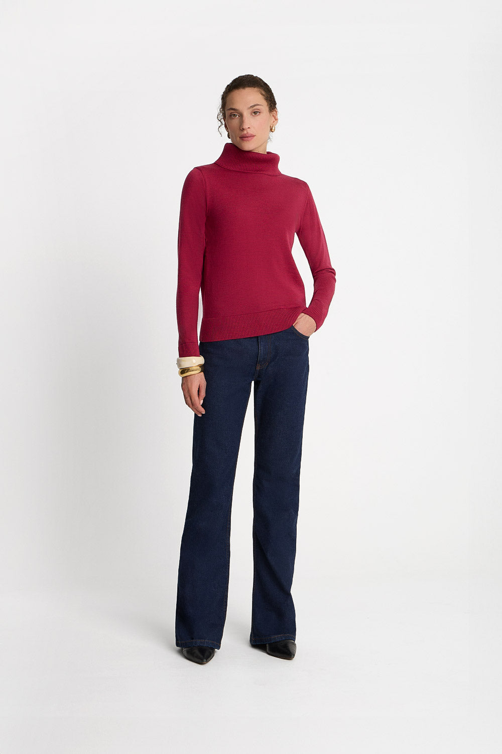 Miss Essential Pink to klasyczny różowy sweter z golfem, który wprowadza do jesienno-zimowej garderoby świeżość i kobiecy akcent. Uszyty w 100% z wełny merino, zapewnia komfort – ogrzewa w chłodne dni, jednocześnie pozwalając skórze oddychać. Naturalna przędza jest miękka i delikatna, dzięki czemu sweter jest przyjemny w dotyku i nie podrażnia skóry.