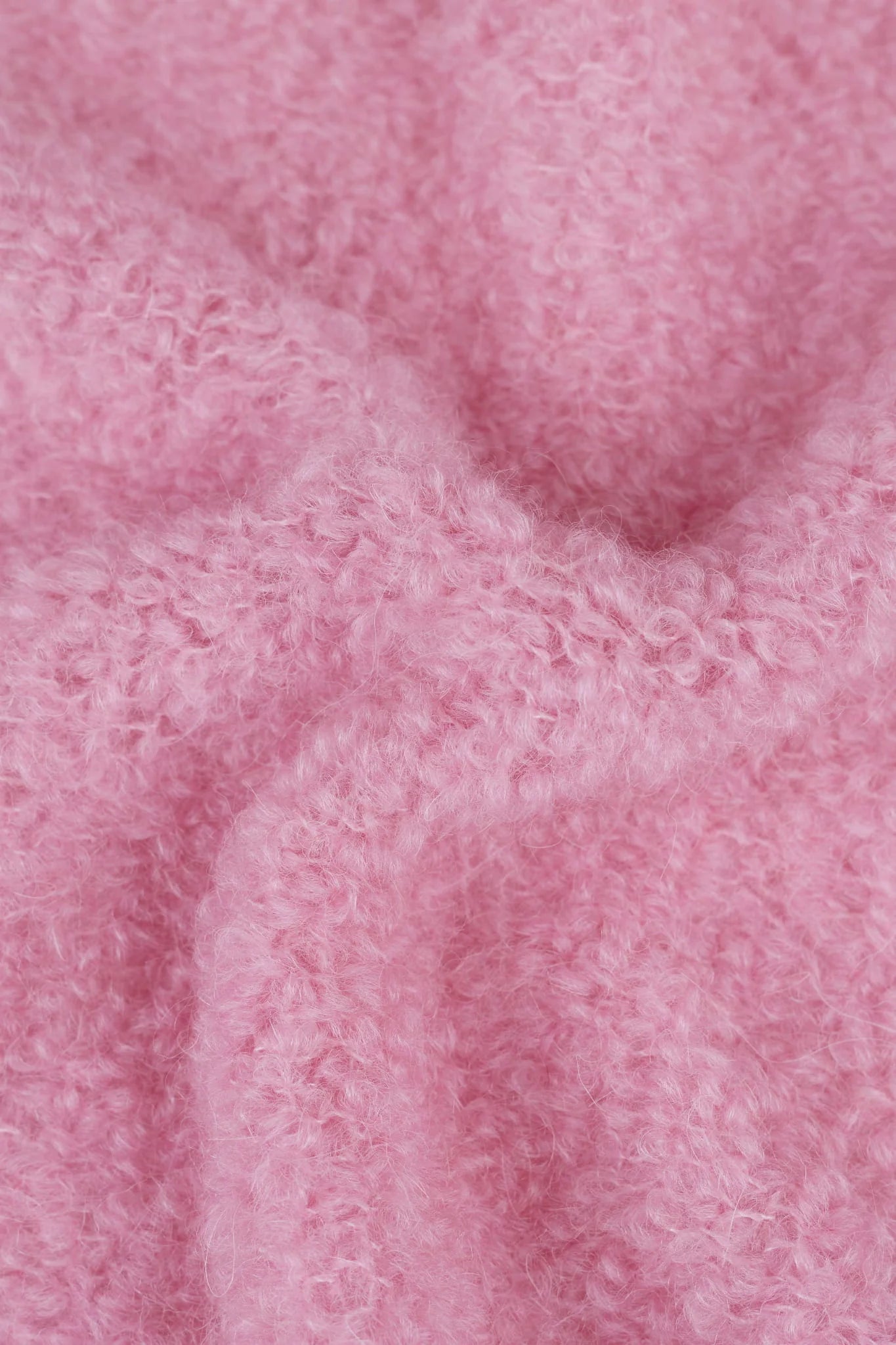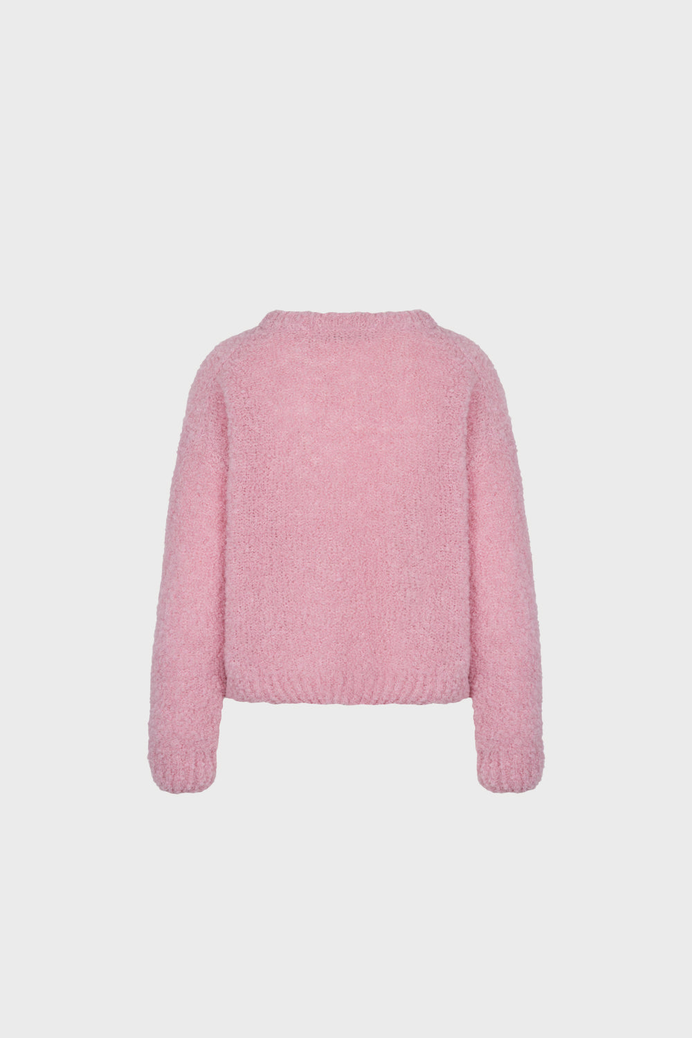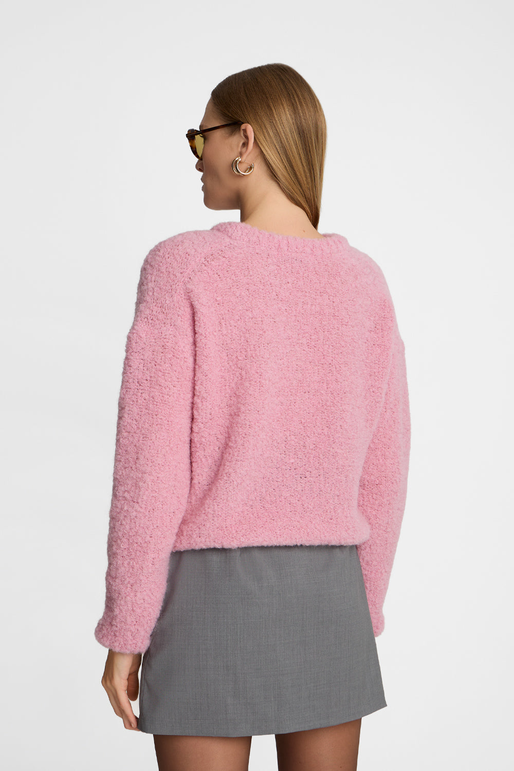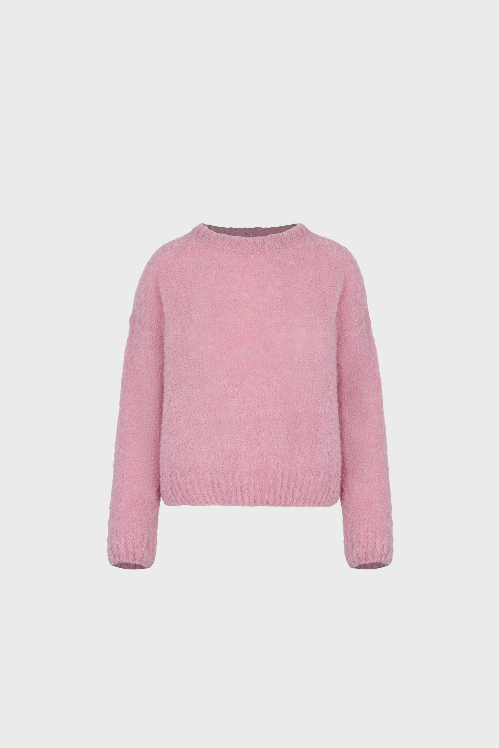 Różowy sweter damski boucle Miss Fluffy Pink to połączenie kobiecości, miękkości i nowoczesnego luzu. Wykonany z przyjemnej w dotyku przędzy typu boucle, zapewnia komfort i delikatne otulenie sylwetki. Pastelowy róż nadaje stylizacjom lekkości, a prosty, klasyczny krój z dekoltem typu crew neck sprawia, że model świetnie prezentuje się zarówno z jeansami, jak i spódnicą.