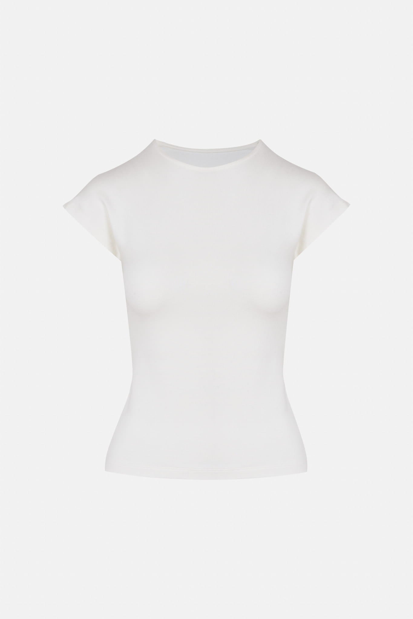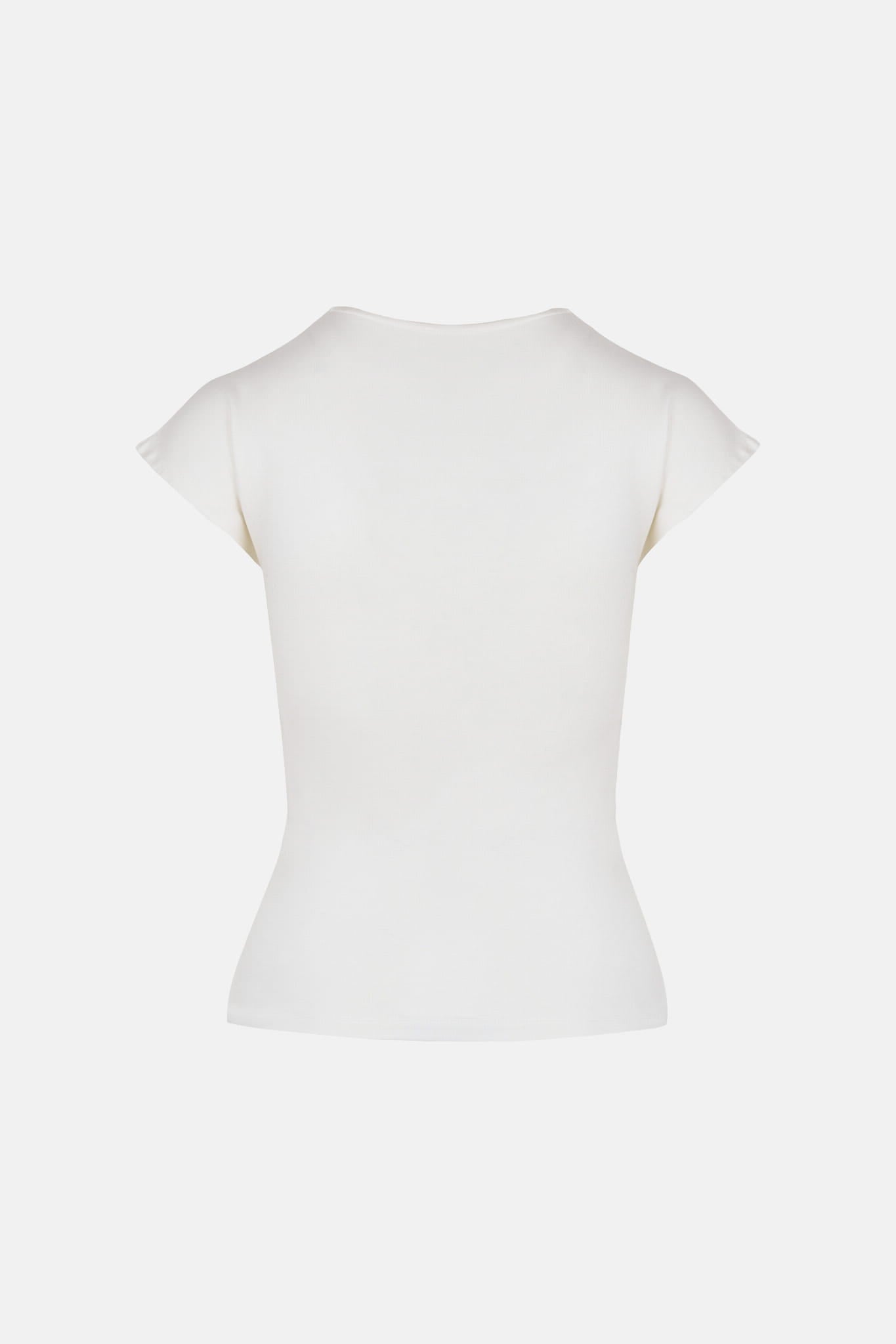 Śmietankowa koszulka damska z przedłużonym ramieniem Miss Sleek Off White