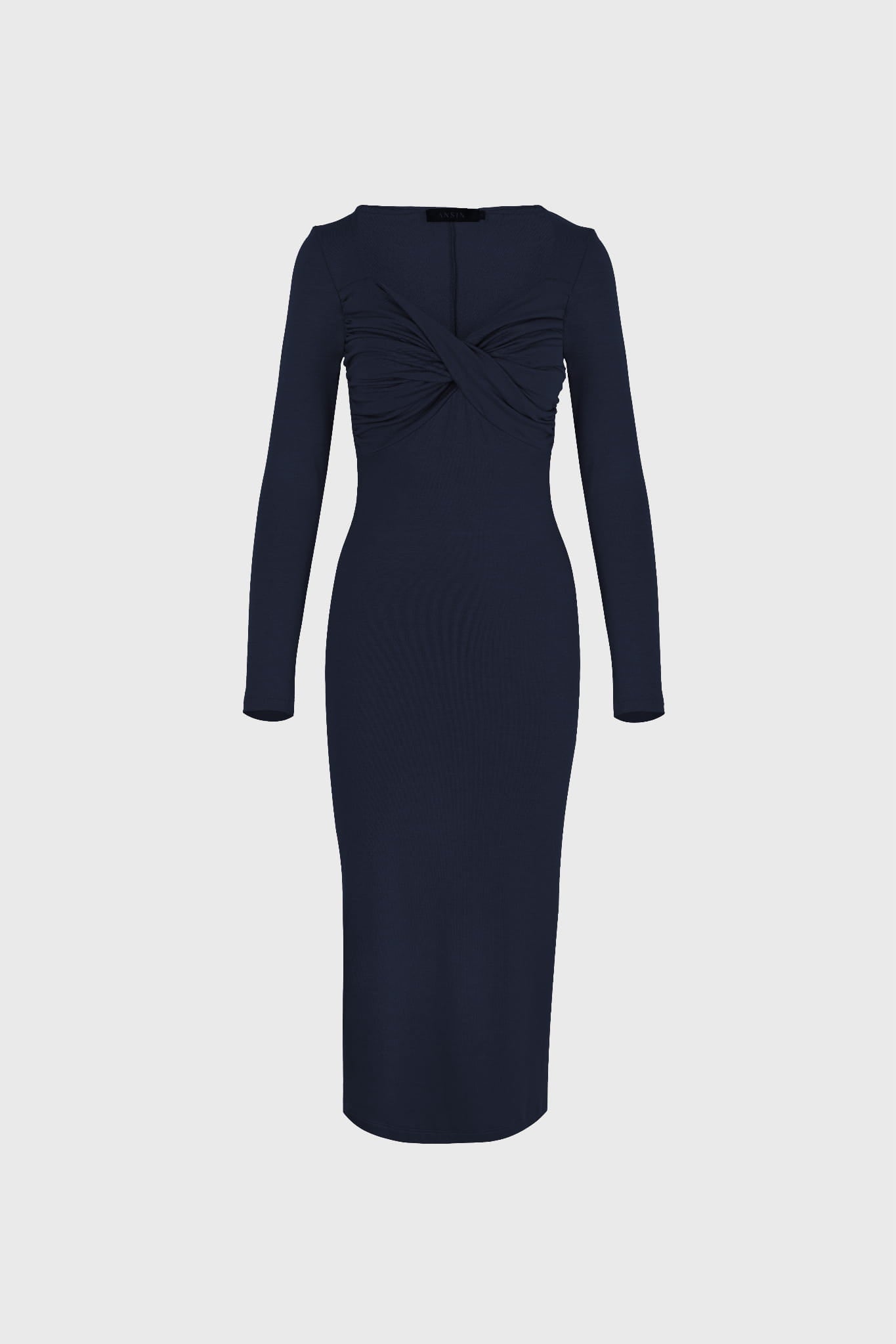 Dopasowana sukienka midi w odcieniu głębokiego granatu to idealna propozycja dla kobiet, które cenią połączenie klasyki i nowoczesnego stylu. Uszyta z miękkiej, lejącej dzianiny, delikatnie opływa sylwetkę, podkreślając jej kształty i zapewniając komfort noszenia. Drapowany kopertowy dekolt dodaje kobiecości i subtelnie eksponuje linię szyi, podczas gdy długość do połowy łydki zapewnia elegancki i uniwersalny charakter. Z długimi rękawami i przemyślanym krojem, ta granatowa dzianinowa sukienka midi świetnie sprawdzi się zarówno na wieczorne wyjście, jak i do pracy czy na rodzinne spotkanie. Miękka dzianina z dodatkiem elastanu dopasowuje się do ciała, zapewniając swobodę ruchów.