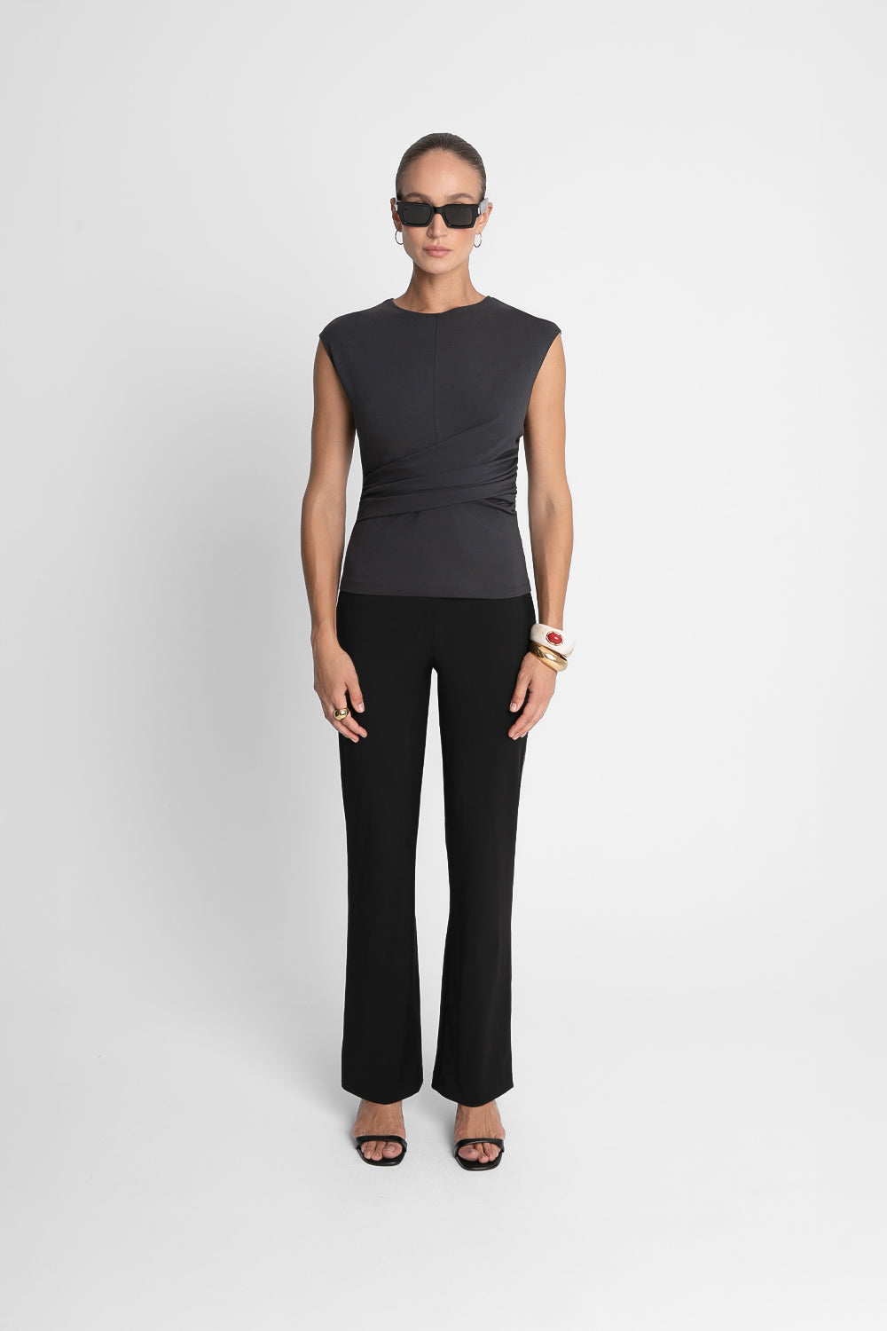Szary T-shirt damski Miss Tangled Grey to minimalistyczny basic z twistem – gładka koszulka z okrągłym dekoltem i charakterystycznym węzłem zakładanym pod biustem, znanym z sukienki Miss Tangled. Dzięki temu subtelnemu rozwiązaniu koszulka nie tylko podkreśla sylwetkę, ale też wyróżnia się na tle klasycznych T-shirtów.