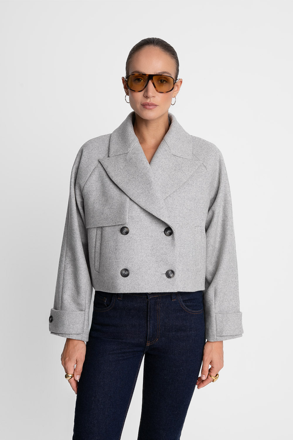 Szara wełniana kurtka damska krótka Miss Decency Light Grey